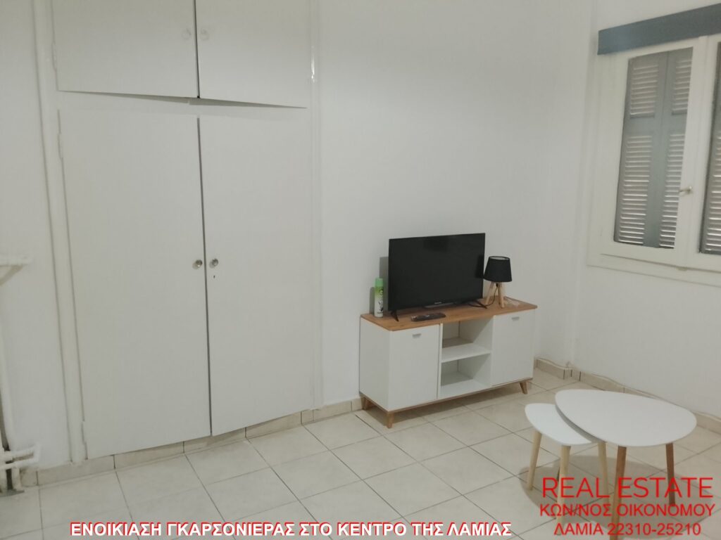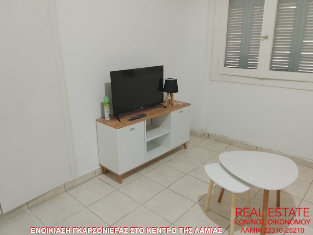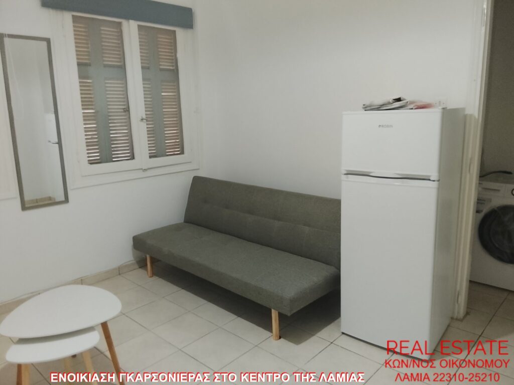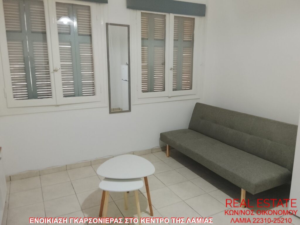 Ενοικιάζεται γκαρσονιέρα, στο κέντρο της Λαμίας. Είναι 35 τ.μ., υπερυψωμένο ισόγειο, πλήρως επιπλωμένη και εξοπλισμένη. Αποτελείται από σαλόνι με καναπέ-κρεββάτι, ώστε να χρησιμοποιείται και ως υπνοδωμάτιο, κουζίνα με φουρνάκι και ψυγείο και ένα μπάνιο. Δεν διαθέτει θέρμανση και βεράντα. Τιμή ενοικίασης 150 ευρώ.