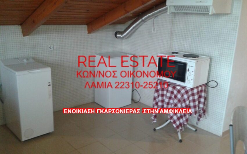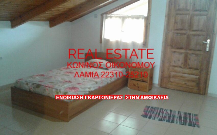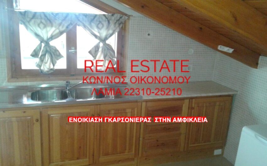 Ενοικιάζεται μεγάλο studio, στην Αμφίκλεια. Είναι 69τ.μ., πλήρως επιπλωμένο, με δωρεάν ίντερνετ, κατασκευής του 2000. Αποτελείται από ενιαίο χώρο κουζίνα- υπνοδωμάτιο και λουτρό. Διαθέτει βεράντα με θέα. Τιμή ενοικίασης 200 ευρώ.