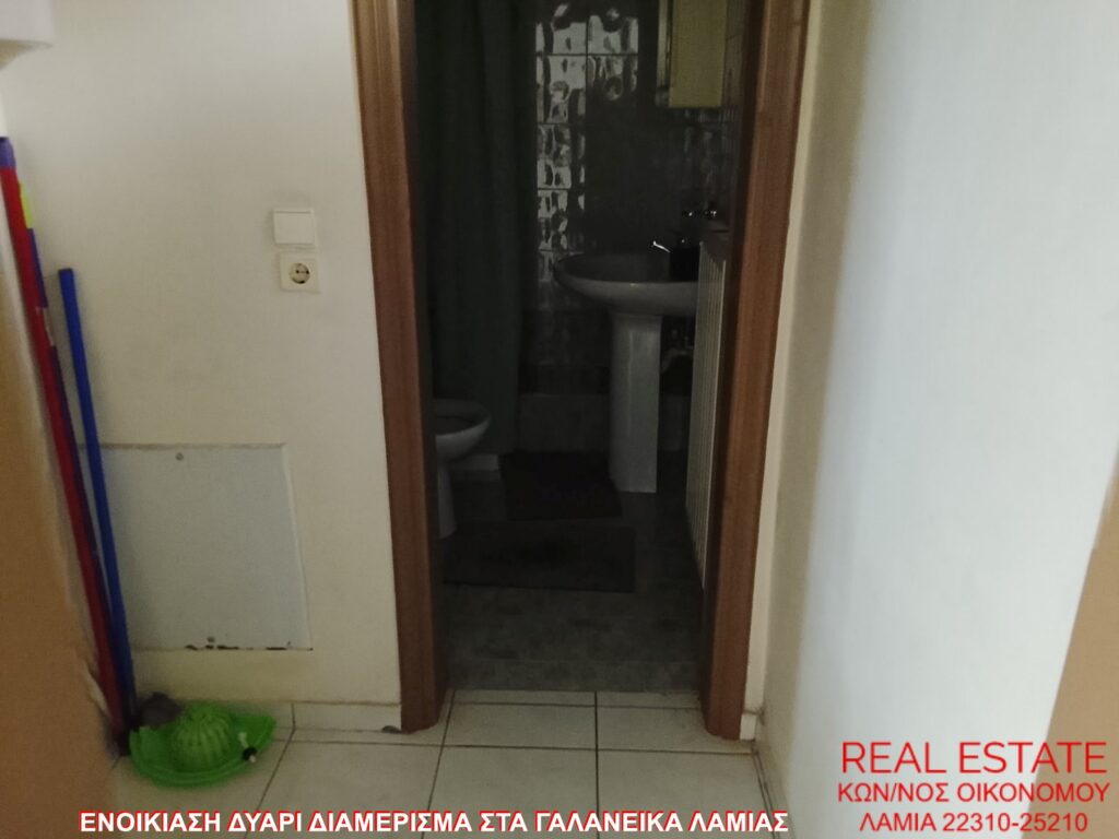 Ενοικιάζεται δυάρι διαμέρισμα, στα Γαλανέικα Λαμίας. Είναι 45 τ.μ., ισόγειο, επιπλωμένο, εξοπλισμένο με ηλεκτρικές συσκευές (εκτός πλυντηρίου και κλιματιστικού) και φωτεινό. Αποτελείται από ενιαίο χώρο σαλόνι-κουζίνα, ένα υπνοδωμάτιο και ένα μπάνιο. Διαθέτει αυτονομία θέρμανσης πετρελαίου, τζάκι, κουφώματα αλουμινίου, διπλά τζάμια, σίτες και μεγάλη αυλή. Τιμή ενοικίασης 250 ευρώ.