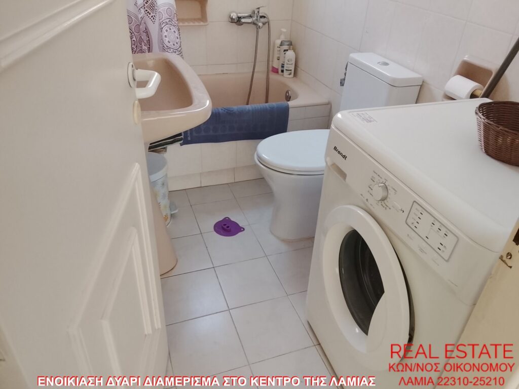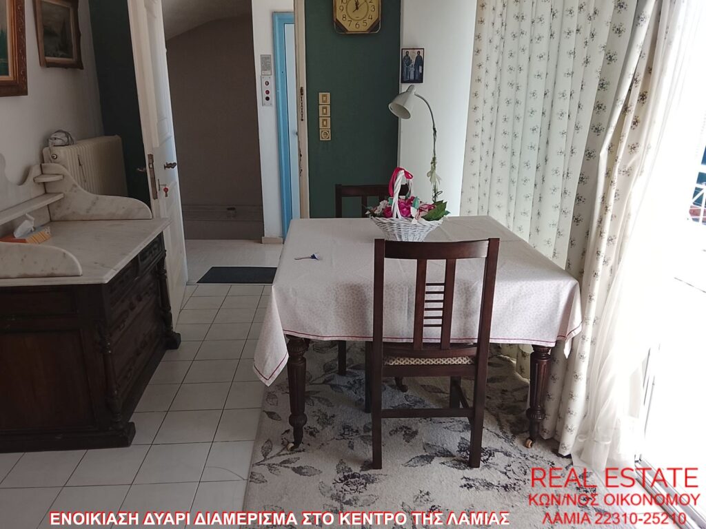 Ενοικιάζεται δυάρι διαμέρισμα, στο κέντρο της Λαμίας. Είναι 50 τ.μ., 3ου ορόφου, πλήρως επιπλωμένο, εξοπλισμένο με οικιακές ηλεκτρικές συσκευές, διαμπερές και φωτεινό. Αποτελείται από ενιαίο χώρο σαλόνι-κουζίνα, ένα υπνοδωμάτιο και ένα μπάνιο. Διαθέτει αυτονομία θέρμανσης, κλιματιστικό, κουφώματα αλουμινίου, διπλά τζάμια, σίτες και βεράντα. Στην πολυκατοικία υπάρχει ασανσέρ. Τιμή ενοικίασης 350 ευρώ.