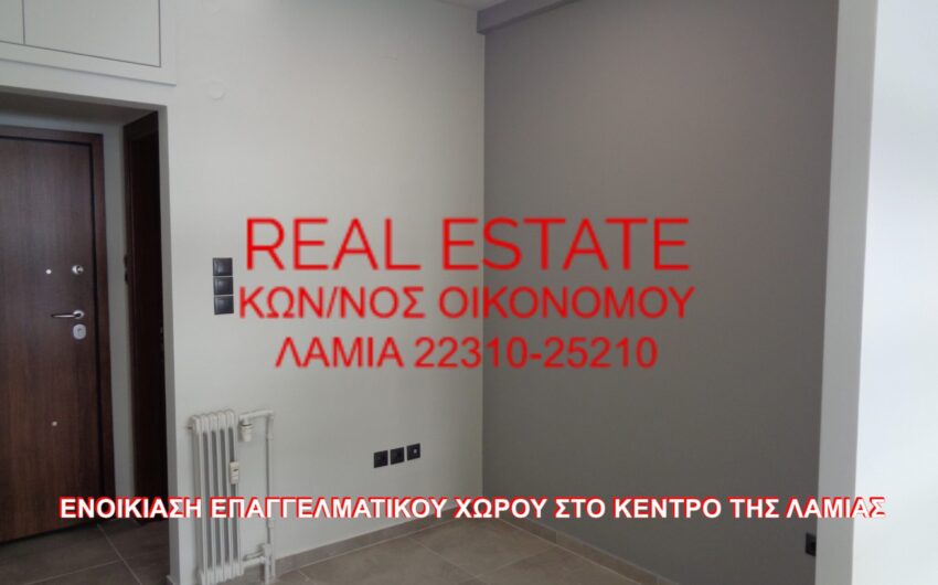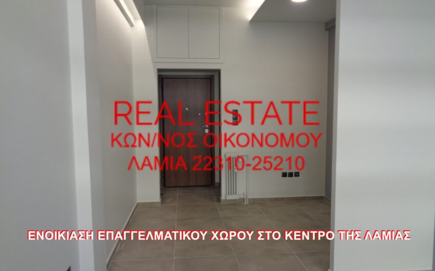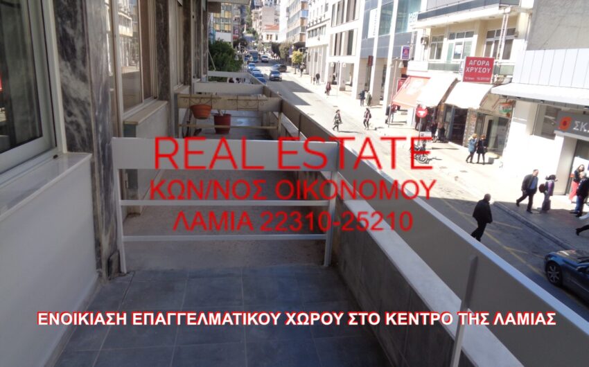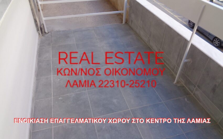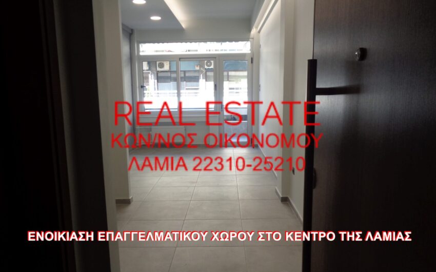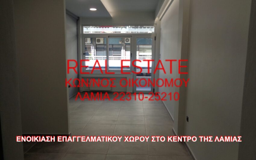 Ενοικιάζεται επαγγελματικός χώρος στο κέντρο της Λαμίας. Είναι γραφείο, 27 τ.μ., 1ου ορόφου, πλήρως ανακαινισμένο και φωτεινό. Αποτελείται από έναν μεγάλο ενιαίο χώρο και από ένα μπάνιο. Διαθέτει κουφώματα αλουμινίου, διπλά τζάμια, σίτες, πόρτα ασφαλείας, μεγάλη βεράντα με θέα και ασανσέρ. Βρίσκεται σε ένα από τα πιο κεντρικά σημεία της πόλης και είναι κατάλληλο για επαγγελματική χρήση. Τιμή ενοικίασης 350 ευρώ.