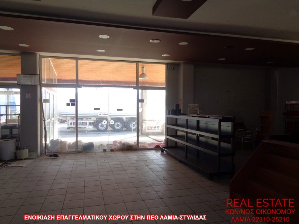 Ενοικιάζεται επαγγελματικός χώρος, στην ΠΕΟ Λαμίας-Στυλίδας. Αποτελείται από αίθουσα 320 τ.μ., ισόγειο 200 τ.μ., υπόγειο 130 τ.μ. και βεράντα στεγασμένη. Η κατασκευή του έγινε το 1992 και βρίσκεται στο 7.6 χιλιόμετρο ΠΕΟ Λαμίας-Στυλίδας. Τιμή ενοικίασης 2.000 ευρώ συζητήσιμη.