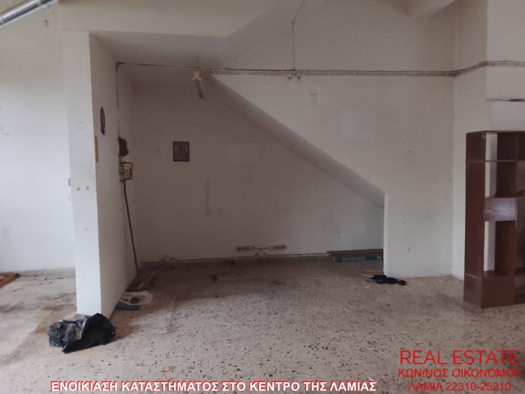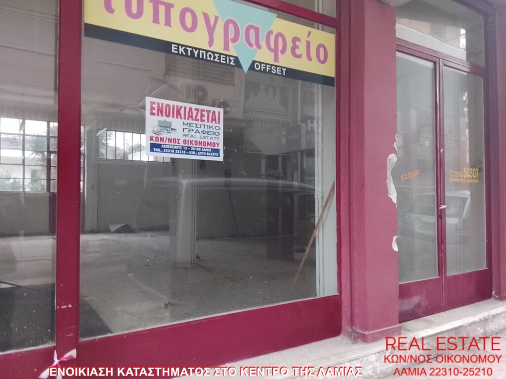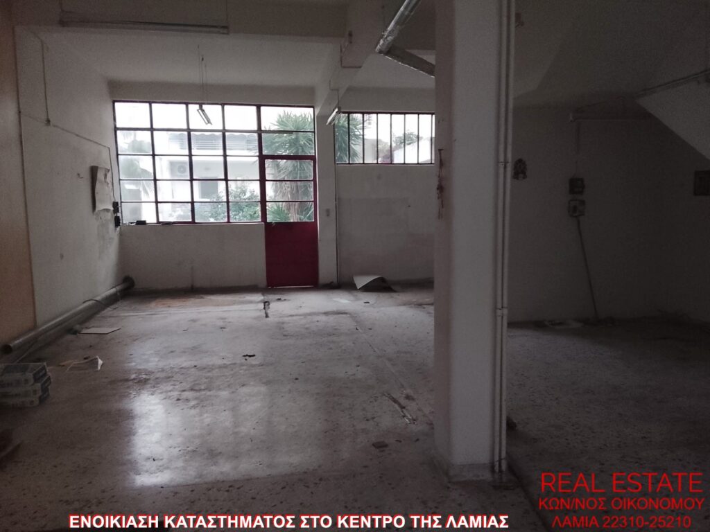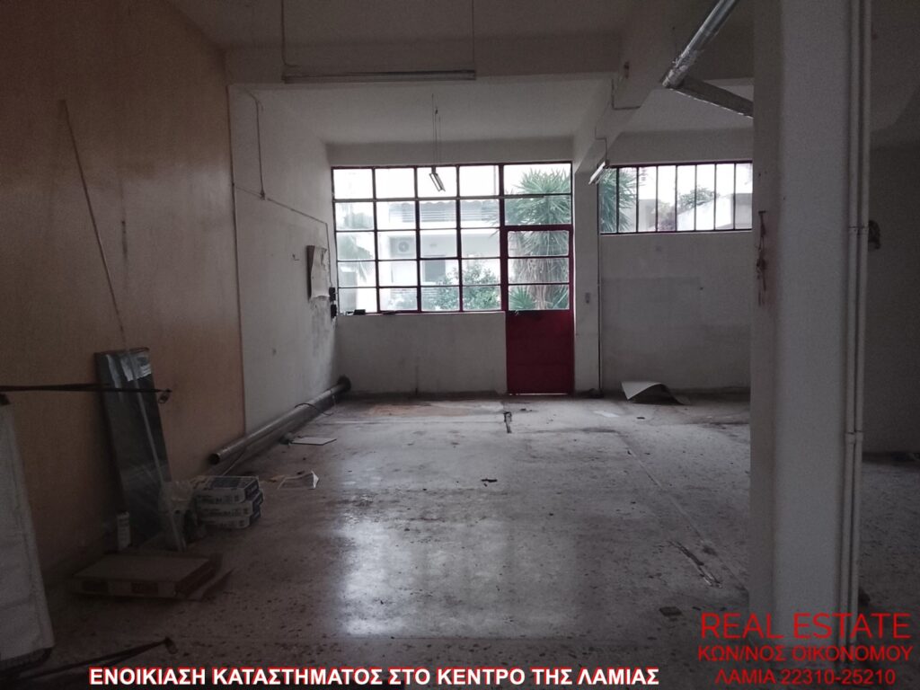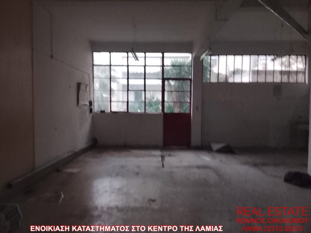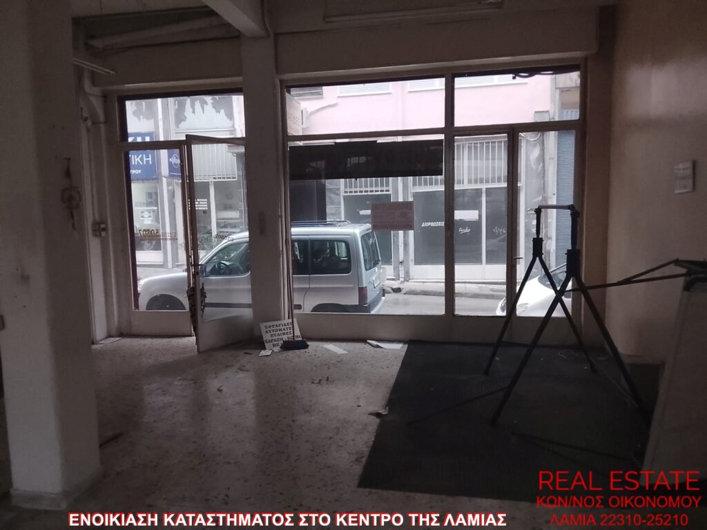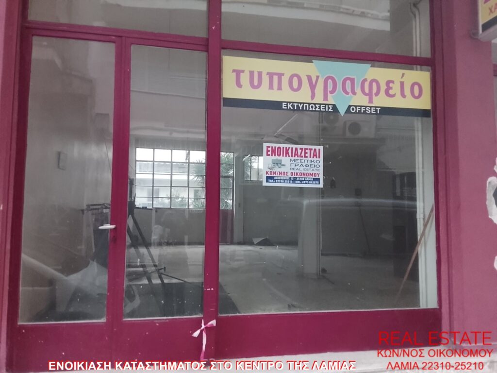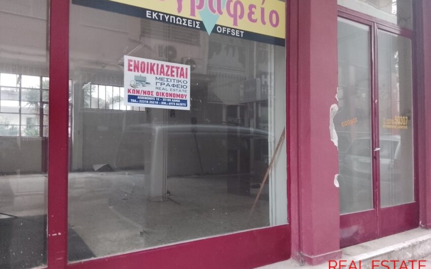 Ενοικιάζεται κατάστημα, στο κέντρο της Λαμίας. Είναι 70 τ.μ., ισόγειο, με πρόσοψη σε δρόμο, διαμπερές και φωτεινό. Αποτελείται από μεγάλο ενιαίο χώρο και τουαλέτα. Είναι κατάλληλο για επαγγελματική στέγη. Τιμή ενοικίασης 250 ευρώ.