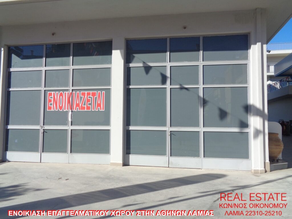 Ενοικιάζεται επαγγελματικός χώρος, στην οδό Αθηνών Λαμίας. Αποτελείται από 100 τ.μ. μαγαζί με προοπτική δημιουργίας παταριού και από από 100 τ.μ. ημιτελή όροφο. Η κατασκευή του έγινε το 1995. Τιμή ενοικίασης 600 ευρώ.