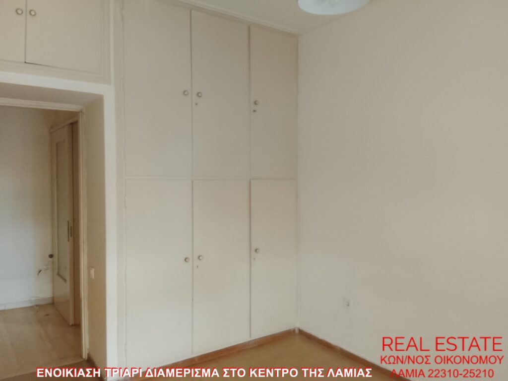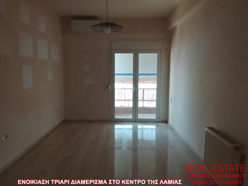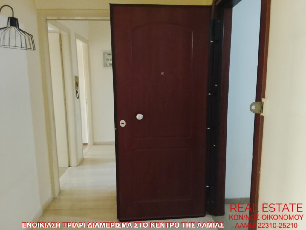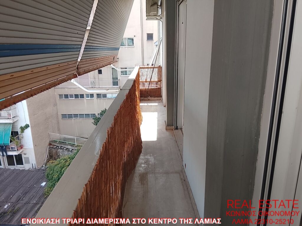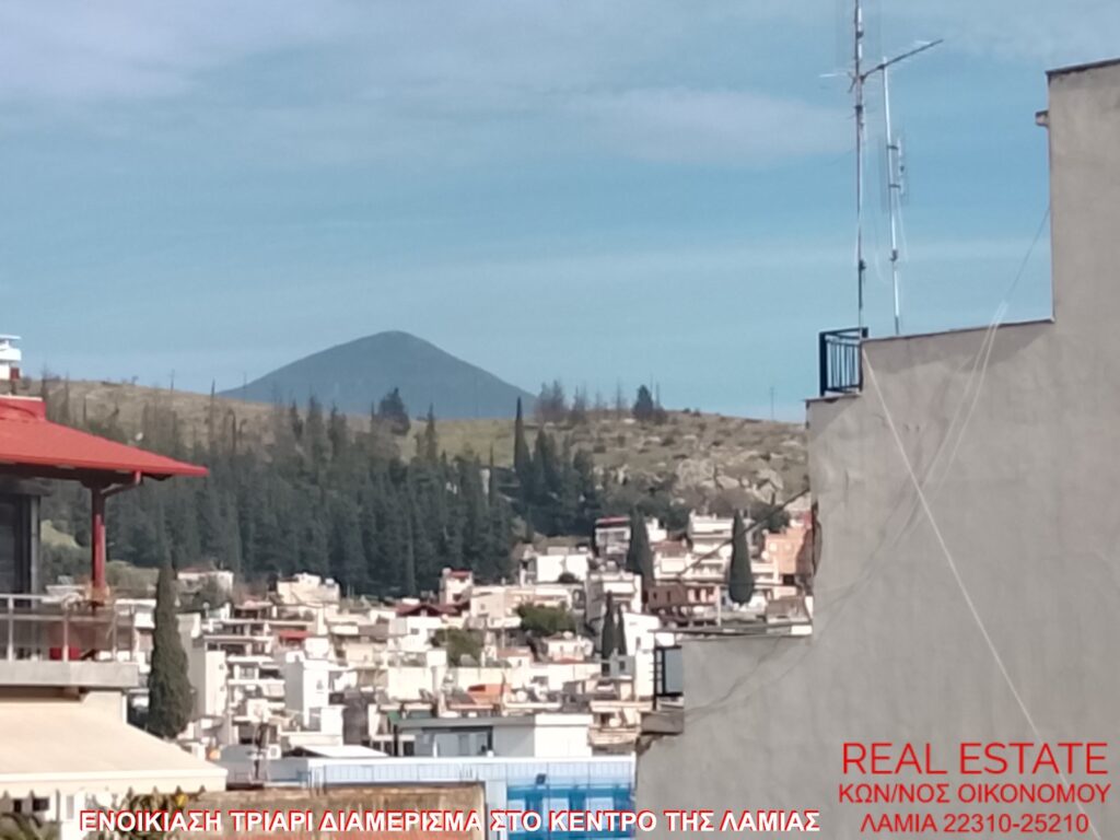 Ενοικιάζεται τριάρι διαμέρισμα, στο κέντρο της Λαμίας. Είναι 75 τ.μ., 2ου ορόφου, ανακαινισμένο και φωτεινό. Αποτελείται από σαλόνι, κουζίνα, δύο υπνοδωμάτια και ένα μπάνιο. Διαθέτει τρία κλιματιστικά inverter, κουφώματα αλουμινίου, διπλά τζάμια, σίτες, πόρτα ασφαλείας και βεράντα με υπέροχη θέα. Στην πολυκατοικία υπάρχει ασανσέρ. Βρίσκεται σε κεντρικότατο σημείο της πόλης και είναι κατάλληλο και για επαγγελματική χρήση. Τιμή ενοικίασης 380 ευρώ.