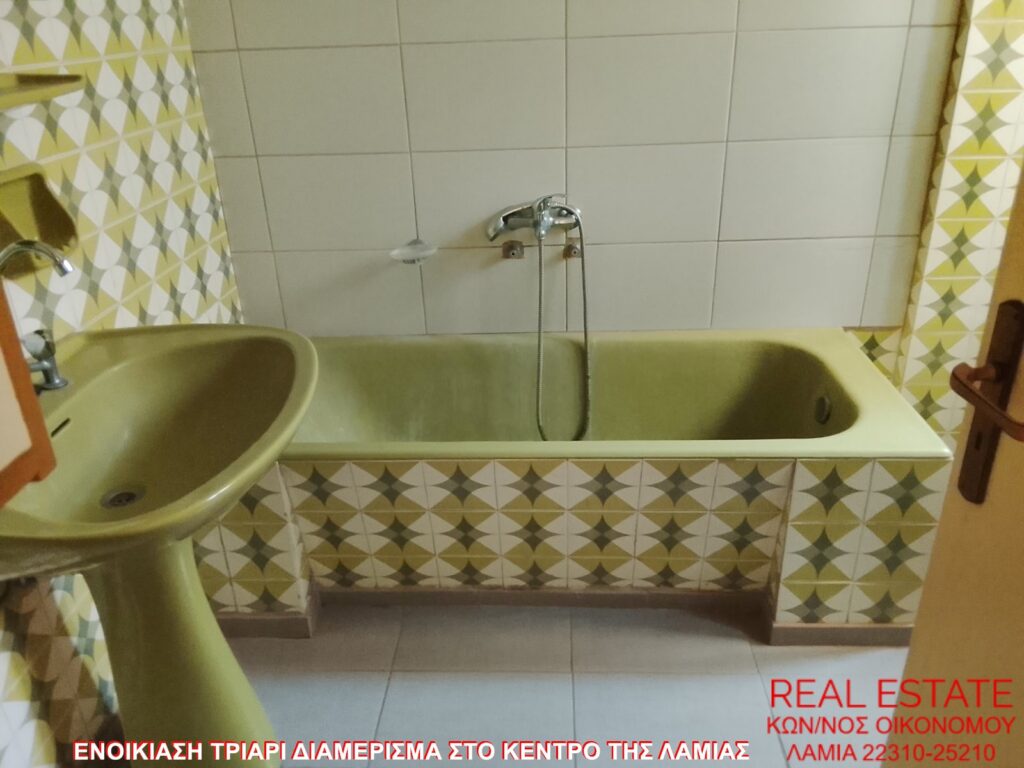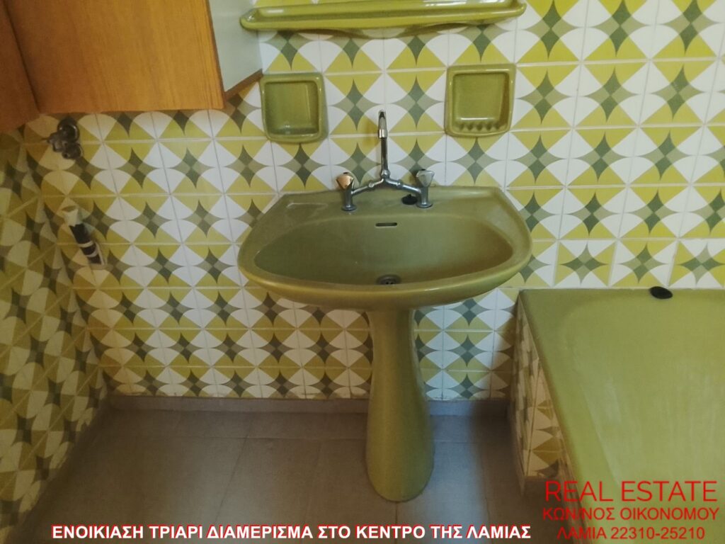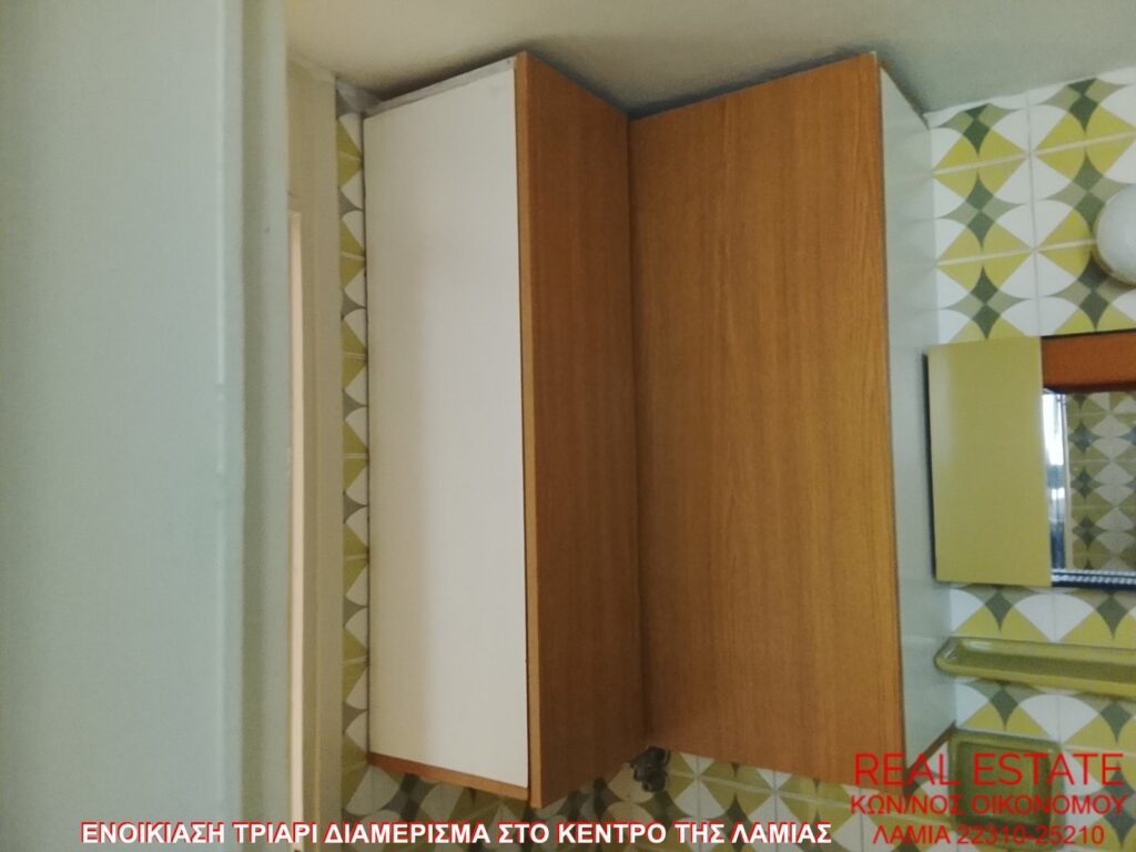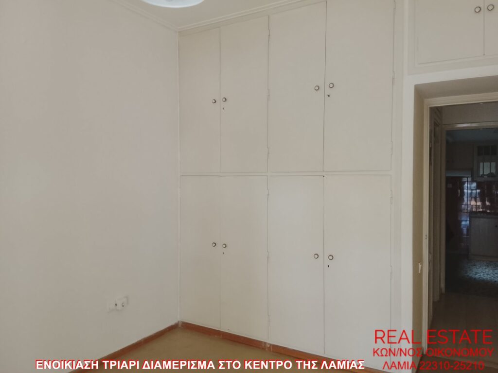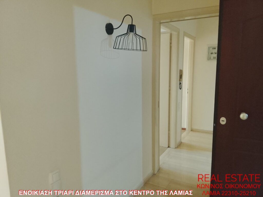 Ενοικιάζεται τριάρι διαμέρισμα, στο κέντρο της Λαμίας. Είναι 75 τ.μ., 2ου ορόφου, ανακαινισμένο και φωτεινό. Αποτελείται από σαλόνι, κουζίνα, δύο υπνοδωμάτια και ένα μπάνιο. Διαθέτει τρία κλιματιστικά inverter, κουφώματα αλουμινίου, διπλά τζάμια, σίτες, πόρτα ασφαλείας και βεράντα με υπέροχη θέα. Στην πολυκατοικία υπάρχει ασανσέρ. Βρίσκεται σε κεντρικότατο σημείο της πόλης και είναι κατάλληλο και για επαγγελματική χρήση. Τιμή ενοικίασης 380 ευρώ.