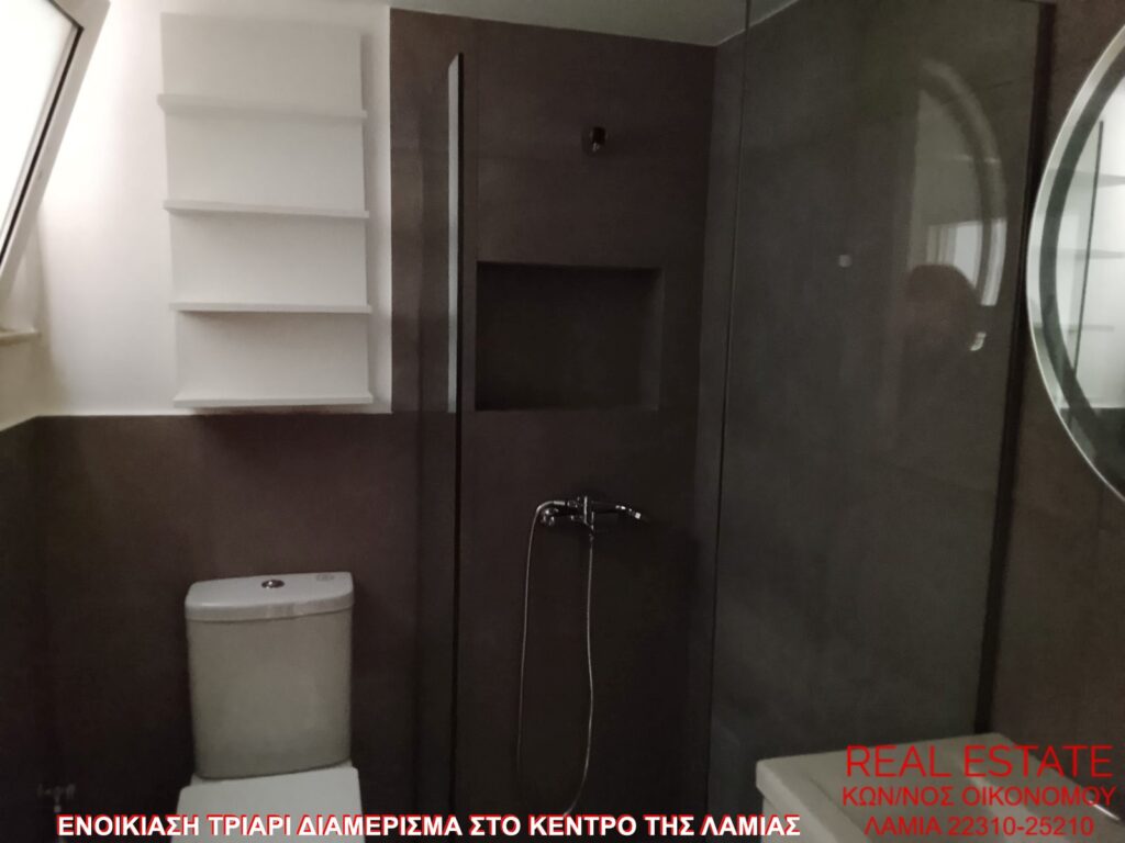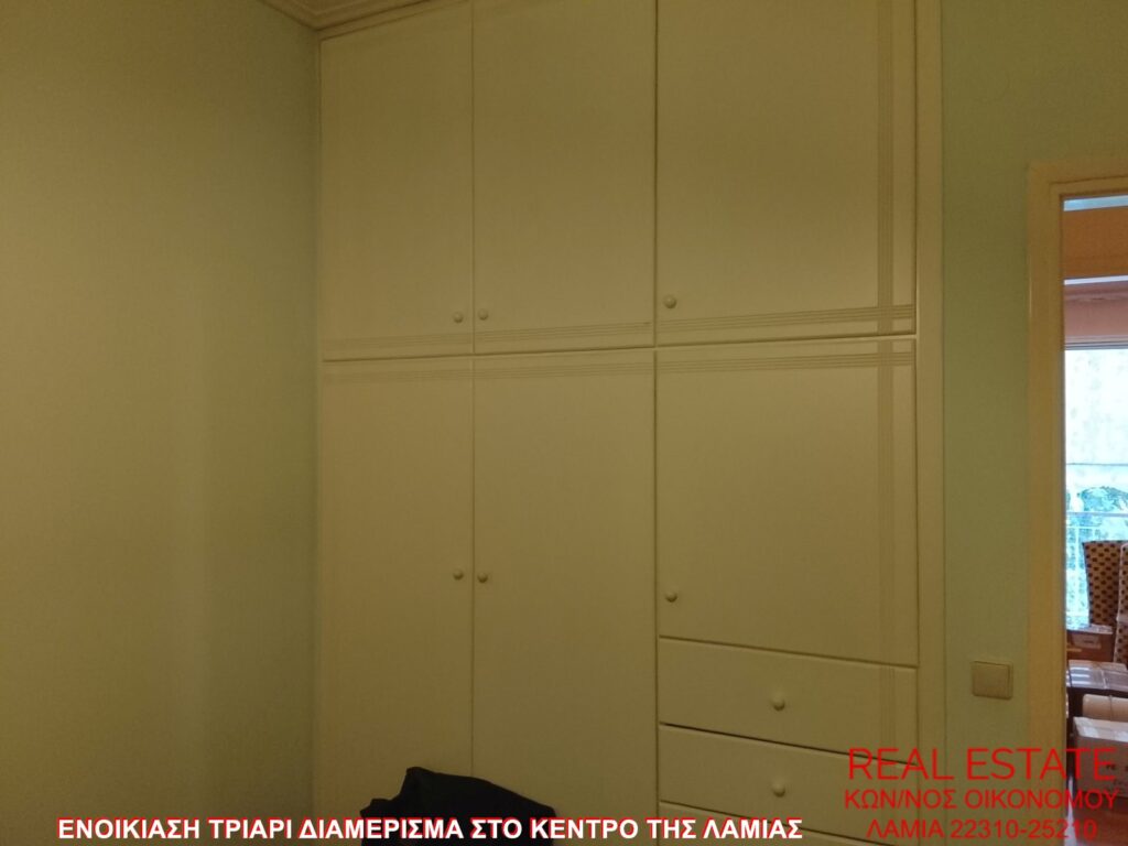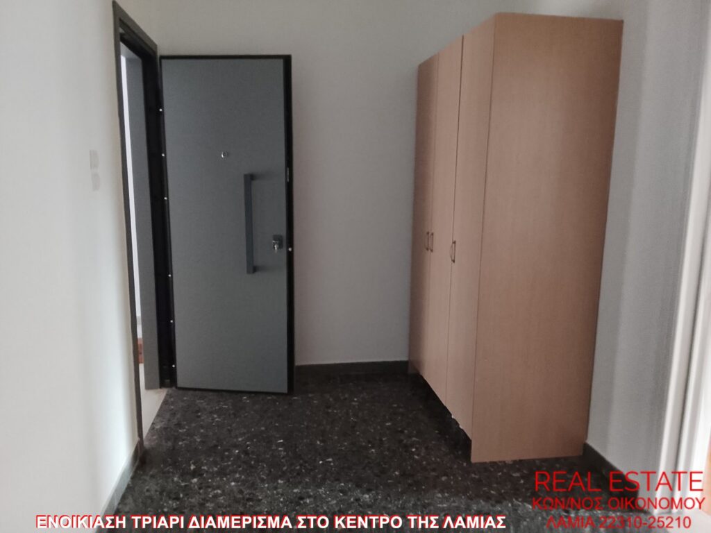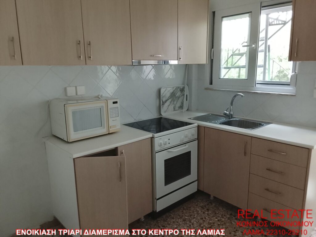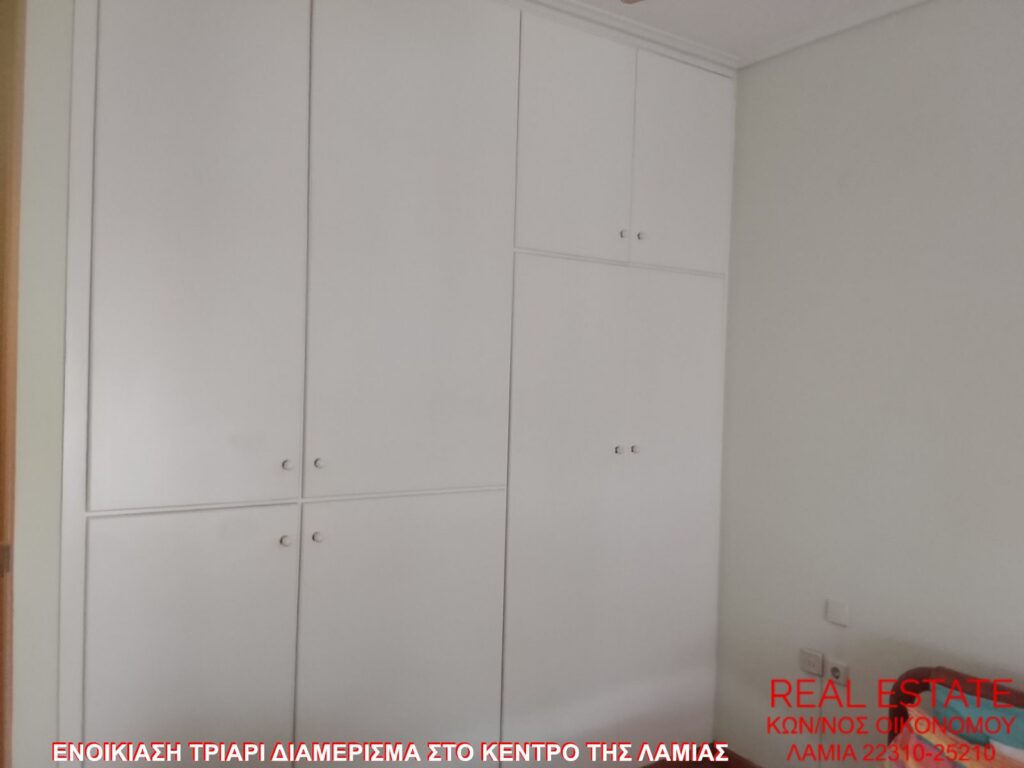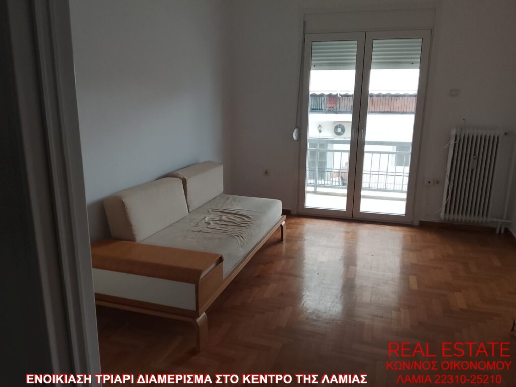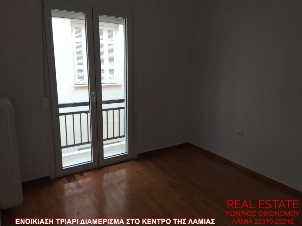 Ενοικιάζεται τριάρι διαμέρισμα, στο κέντρο της Λαμίας. Είναι 75 τ.μ., 2ου ορόφου, ανακαινισμένο, διαμπερές και φωτεινό. Αποτελείται από σαλόνι, κουζίνα, δύο υπνοδωμάτια και ένα μπάνιο. Διαθέτει δύο κλιματιστικά inverter, κουφώματα αλουμινίου, διπλά τζάμια, σίτες, πόρτα ασφαλείας και βεράντα. Δεν έχει ασανσέρ. Τιμή ενοικίασης 360 ευρώ.