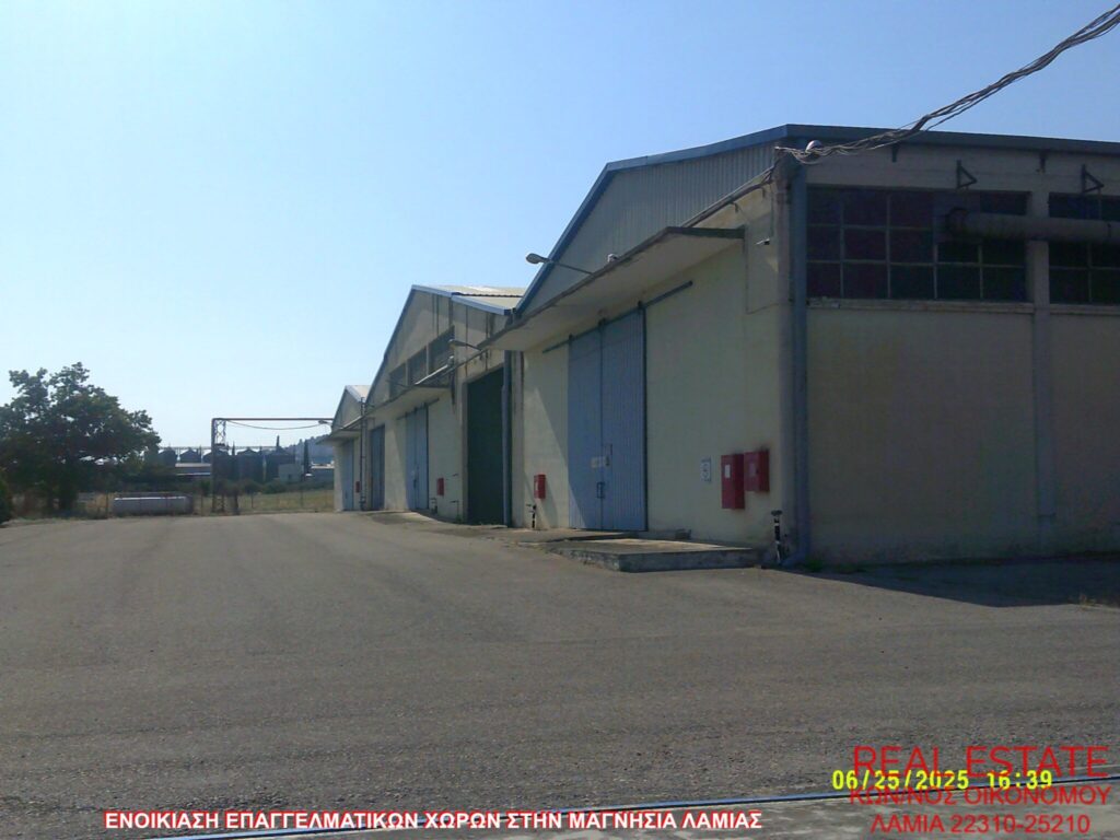 Ενοικιάζονται αποθηκευτικοί χώροι, στην περιοχή της Μαγνησίας Λαμίας. Είναι τέσσερις χώροι 1.100 τ.μ., 1.400 τ.μ., 1.800 τ.μ. και 250 τ.μ. αντίστοιχα. Υπάρχουν συναγερμός, κάμερες και χώρος parking. Βρίσκονται σε περιφραγμένο οικόπεδο. Καλέστε για τιμή.
