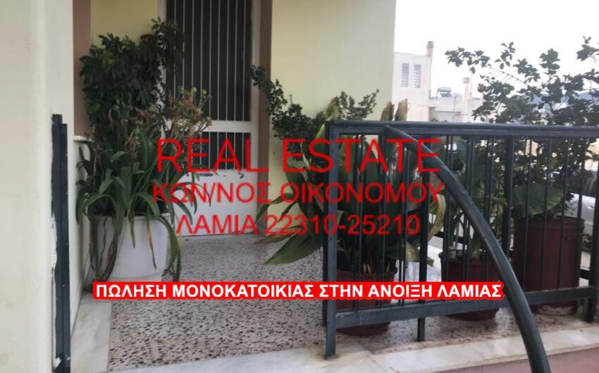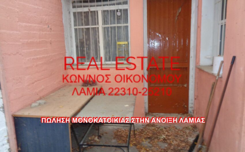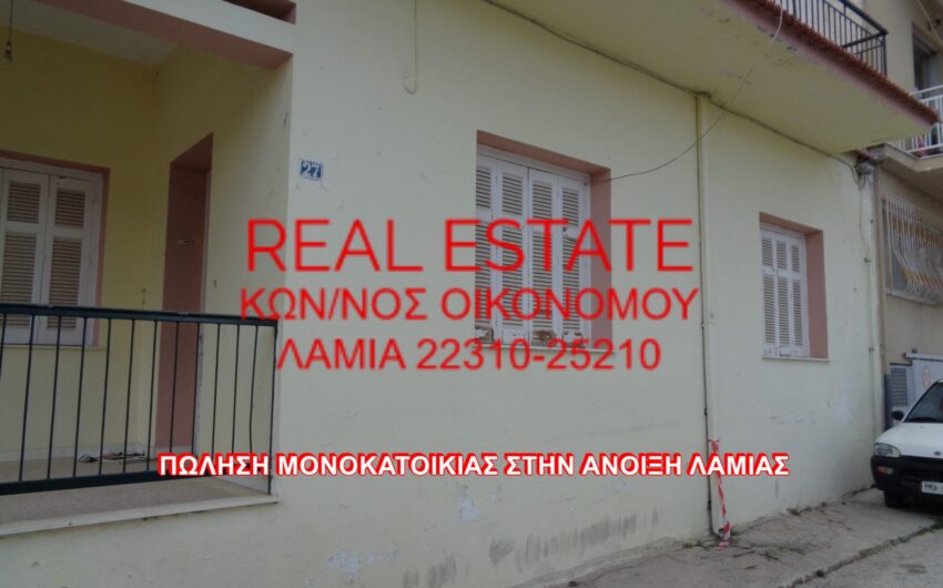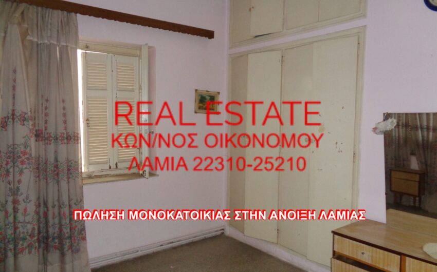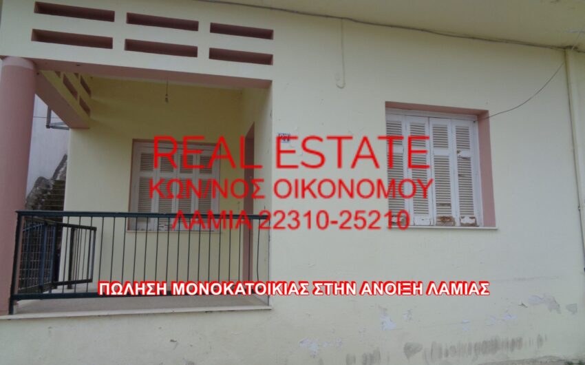 Πωλείται γωνιακή ισόγεια μονοκατοικία, στη περιοχή της Άνοιξης Λαμίας. Είναι 90τ.μ, πέτρινη και φωτεινή. Αποτελείται από σαλόνι, κουζίνα, δύο υπνοδωμάτια και λουτρό. Διαθέτει αυτονομία θέρμανση, μεγάλη αυλή στο πίσω μέρος του σπιτιού και θέα. Είναι κατασκευής του 1967 και ανακαινισμένο το 2004. Ακόμη υπάρχει επιπλέον δικαίωμα δόμησης και βρίσκεται σε 173τ.μ. οικόπεδο. Τιμή πώλησης 42.000 ευρώ.