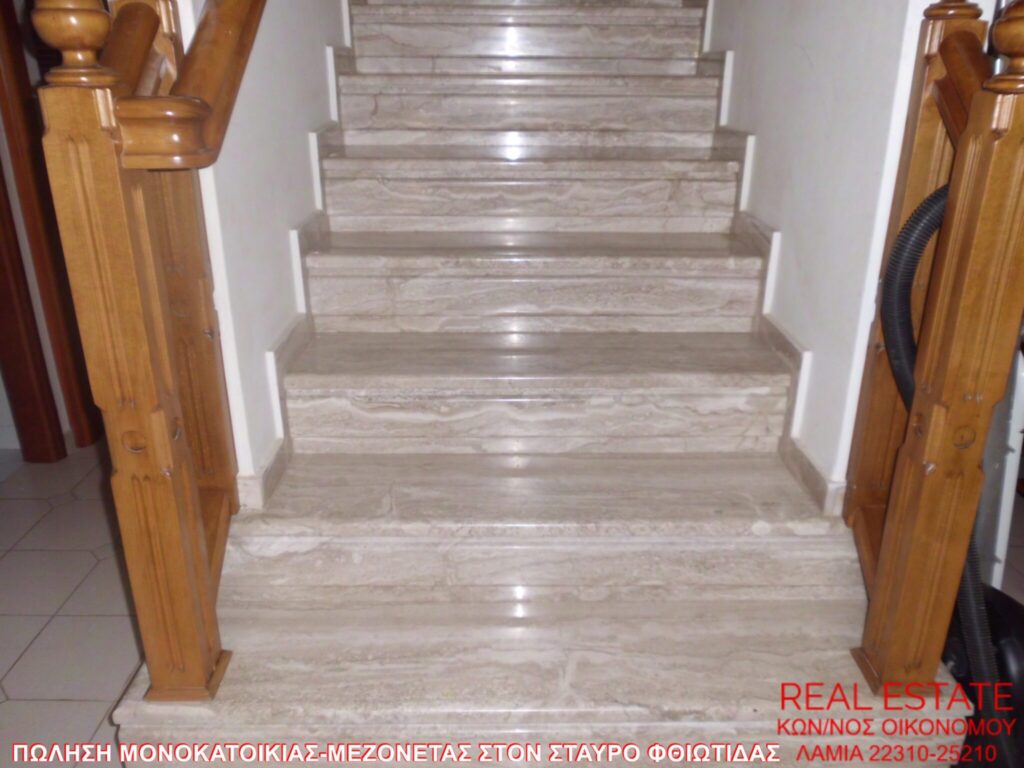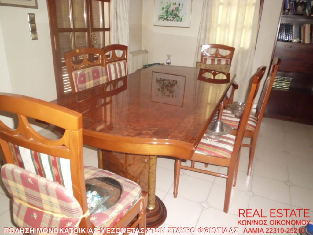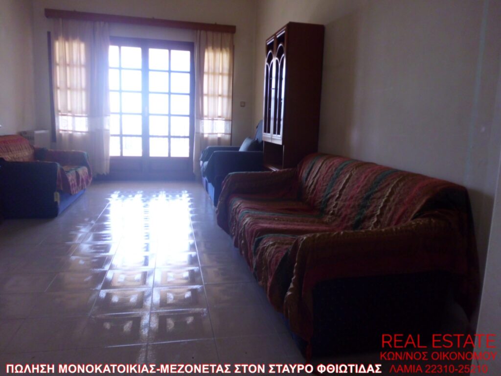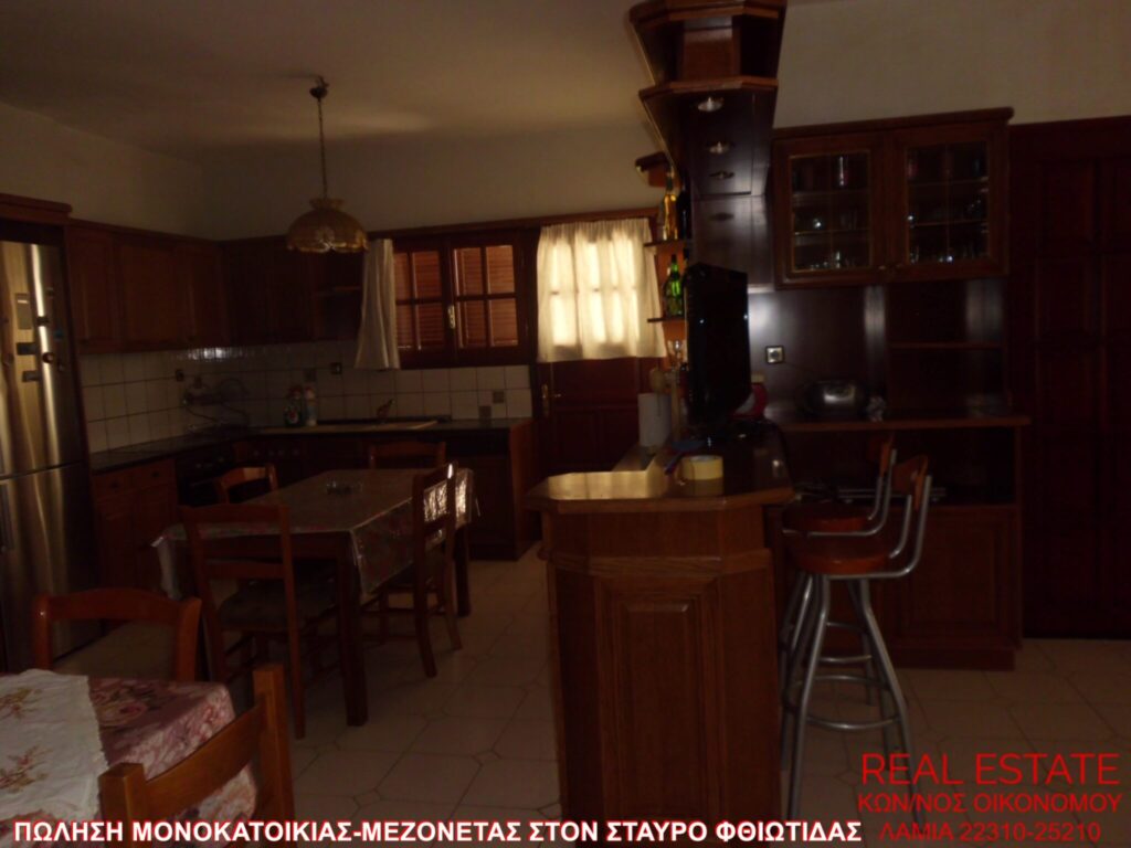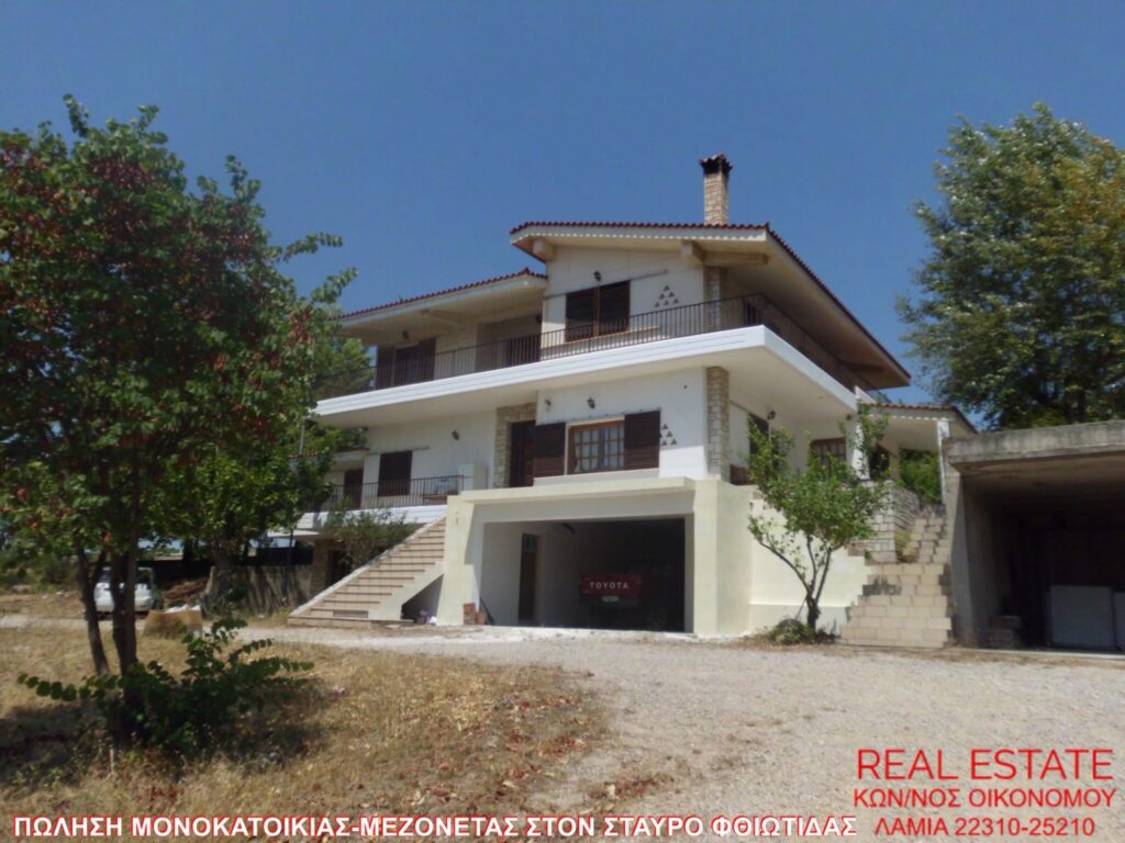 Πωλείται μονοκατοικία-μεζονέτα, στον Σταυρό Φθιώτιδας. Είναι 400 τ.μ. και αποτελείται από τρία επίπεδα ισόγειο, πρώτο και δεύτερο όροφο, που ενώνονται με εσωτερική μαρμάρινη σκάλα. Στο ισόγειο υπάρχει ενιαίος χώρος σαλόνι-κουζίνα, δύο υπνοδωμάτια, στον πρώτο όροφο ενιαίος χώρος σαλόνι-κουζίνα- τραπεζαρία σε δύο επίπεδα, τζάκι, ένα μπάνιο και στον δεύτερο όροφο καθιστικό, τέσσερα υπνοδωμάτια και δύο μπάνια. Η μονοκατοικία διαθέτει αυτονομία θέρμανσης, κουφώματα αλουμινίου, διπλά τζάμια, σίτες, μεγάλες βεράντες με απεριόριστη θέα, μεγάλη αυλή, κήπο κεραμοσκεπή, κλειστή θέση parking και γήπεδο μπάσκετ. Είναι κατασκευασμένη με άριστα υλικά και βρίσκεται σε 6 στρέμματα περιφραγμένο οικόπεδο. Τιμή πώλησης 330.000 ευρώ.
