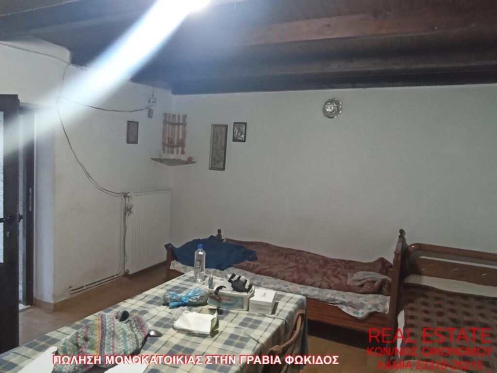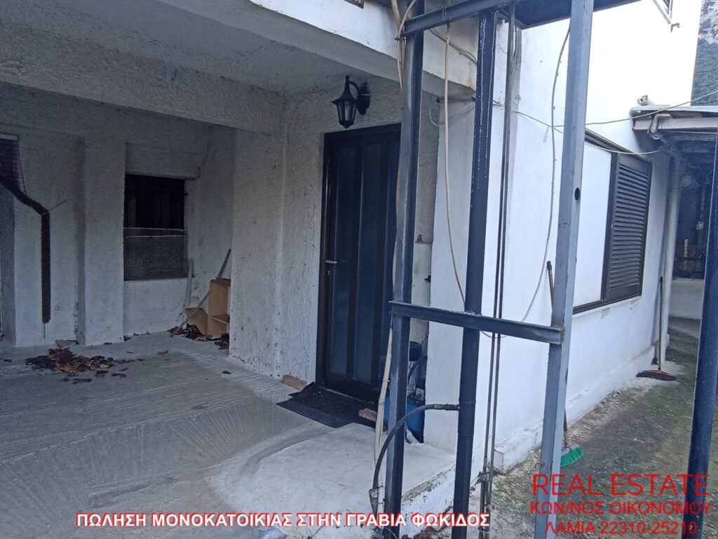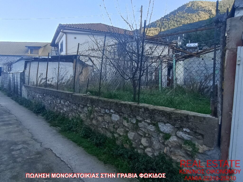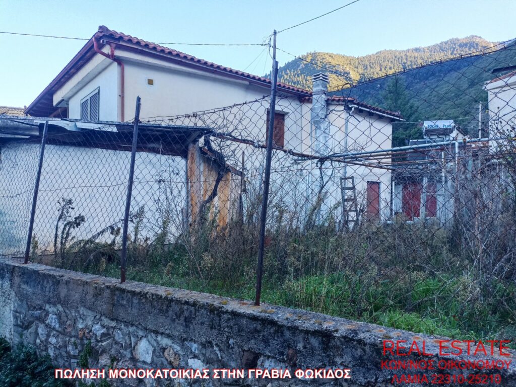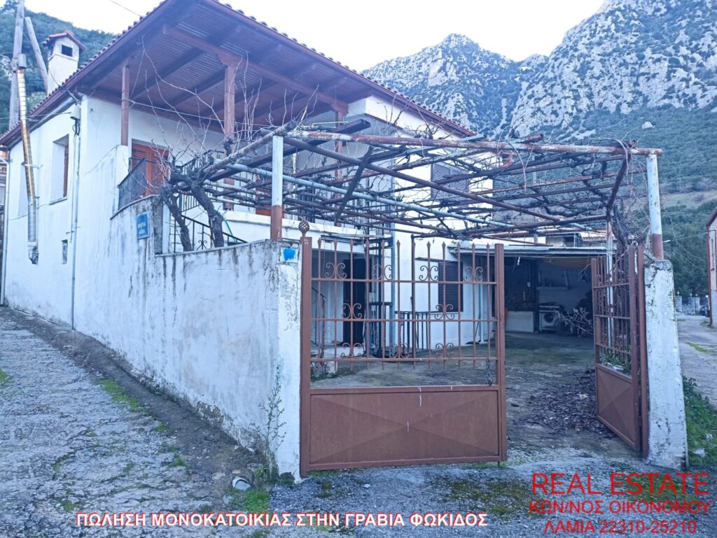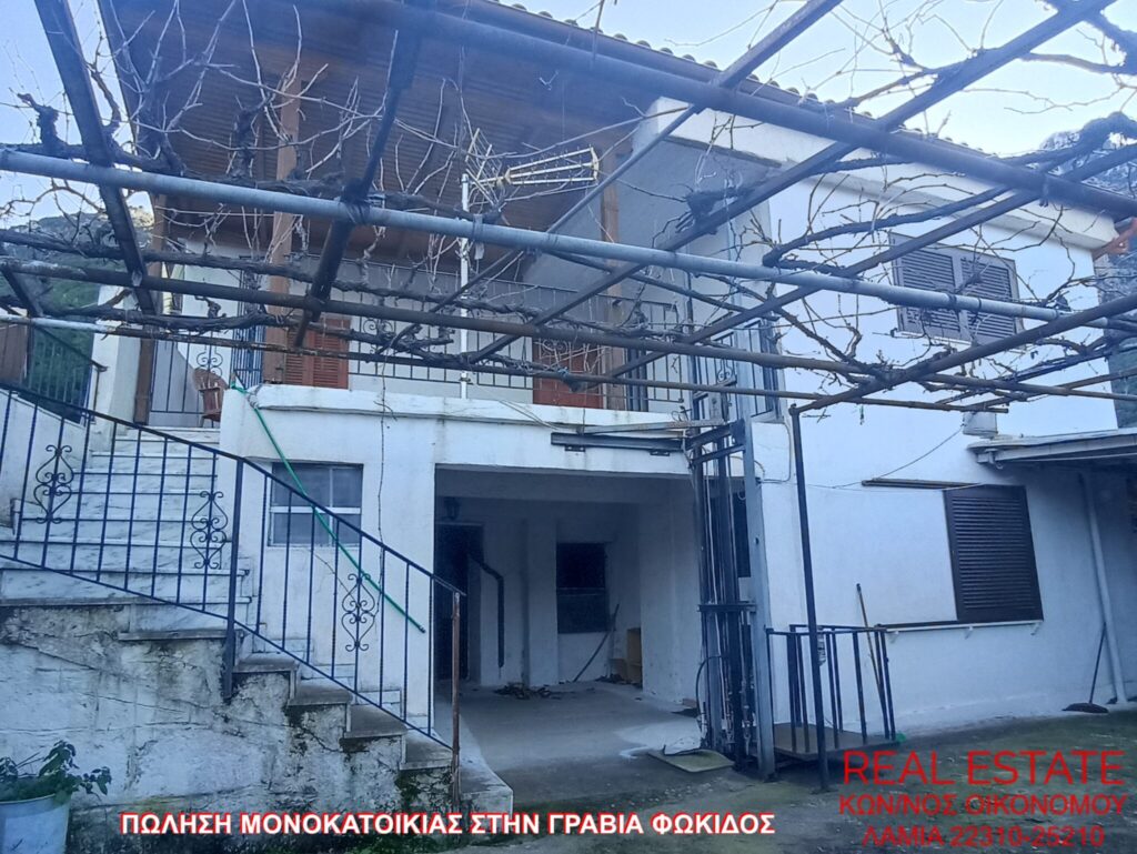 Πωλείται μονοκατοικία, στην Γραβιά Φωκίδος. Αποτελείται από ισόγειο διαμέρισμα 80 τ.μ., απαρτιζόμενο από σαλόνι, κουζίνα, ένα υπνοδωμάτιο, λουτρό και από διαμέρισμα 1ου ορόφου 71 τ.μ., στο οποίο υπάρχει επίσης σαλόνι, κουζίνα, ένα υπνοδωμάτιο και λουτρό. Διαθέτει αυτονομία θέρμανσης, βεράντα, αυλή, θέα και αποθήκη 55 τ.μ. εντός του οικοπέδου. Η κατασκευή της έγινε το 1972 και βρίσκεται σε 320 τ.μ. περιφραγμένο οικόπεδο. Τιμή πώλησης 48.000 ευρώ.