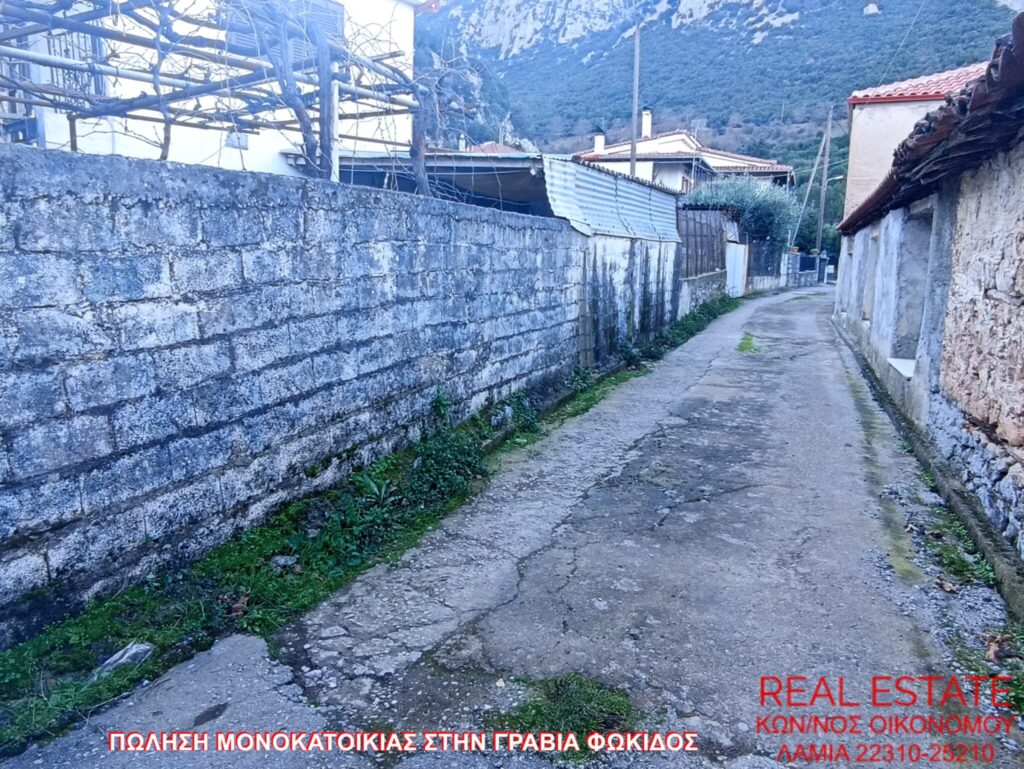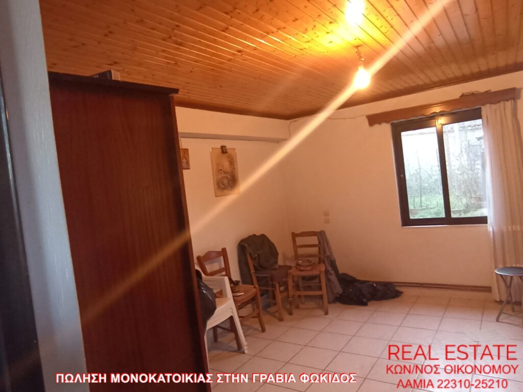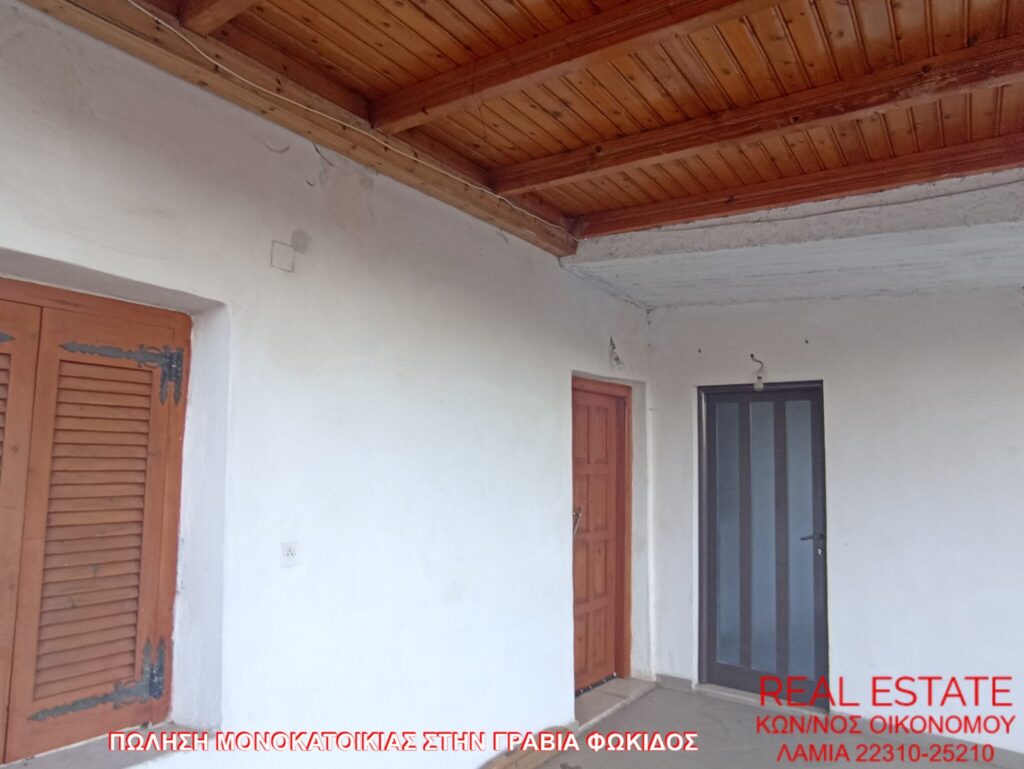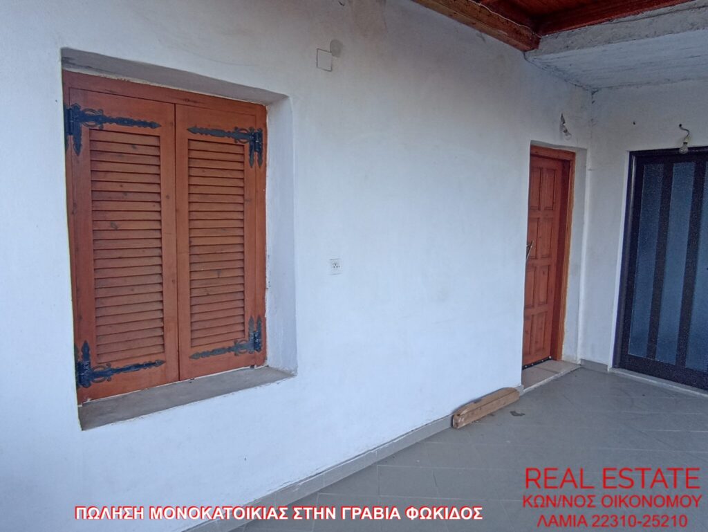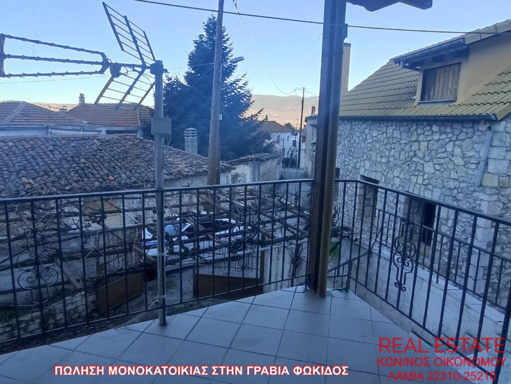 Πωλείται μονοκατοικία, στην Γραβιά Φωκίδος. Αποτελείται από ισόγειο διαμέρισμα 80 τ.μ., απαρτιζόμενο από σαλόνι, κουζίνα, ένα υπνοδωμάτιο, λουτρό και από διαμέρισμα 1ου ορόφου 71 τ.μ., στο οποίο υπάρχει επίσης σαλόνι, κουζίνα, ένα υπνοδωμάτιο και λουτρό. Διαθέτει αυτονομία θέρμανσης, βεράντα, αυλή, θέα και αποθήκη 55 τ.μ. εντός του οικοπέδου. Η κατασκευή της έγινε το 1972 και βρίσκεται σε 320 τ.μ. περιφραγμένο οικόπεδο. Τιμή πώλησης 48.000 ευρώ.