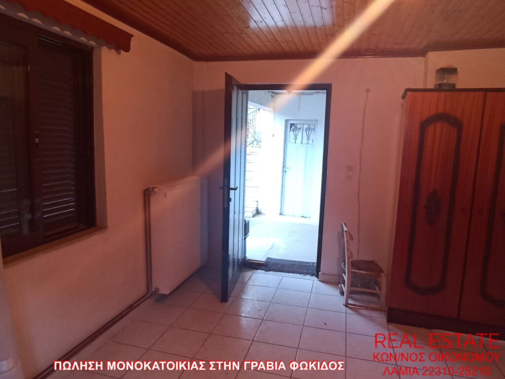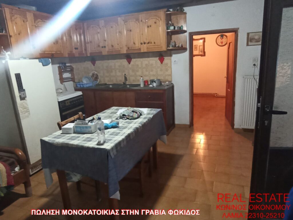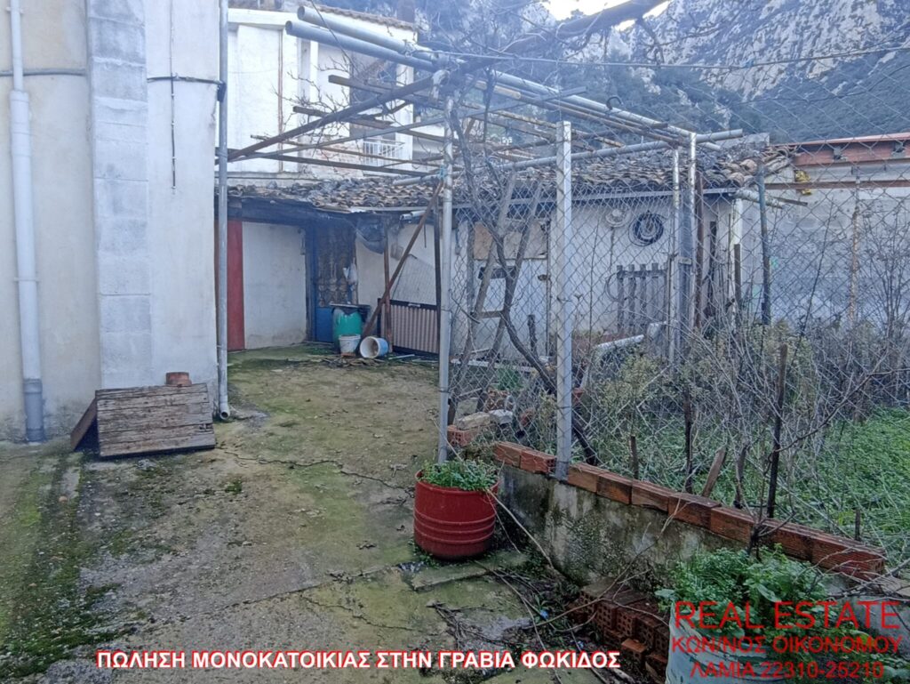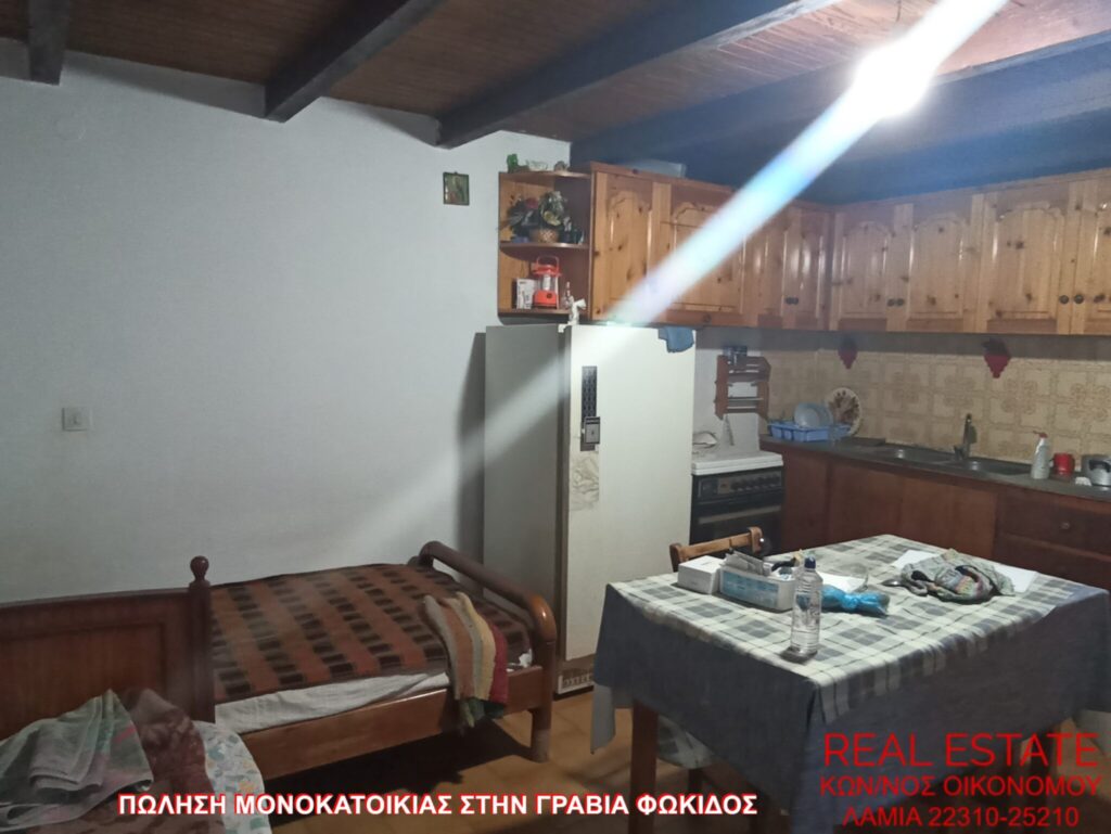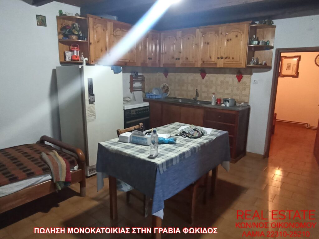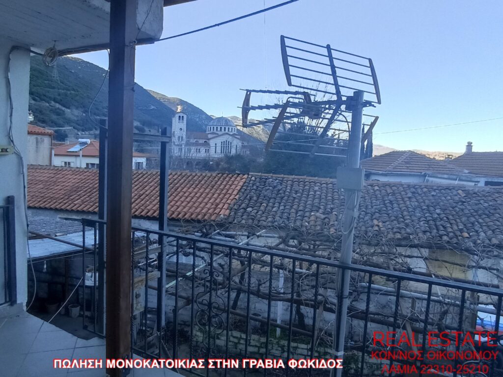 Πωλείται μονοκατοικία, στην Γραβιά Φωκίδος. Αποτελείται από ισόγειο διαμέρισμα 80 τ.μ., απαρτιζόμενο από σαλόνι, κουζίνα, ένα υπνοδωμάτιο, λουτρό και από διαμέρισμα 1ου ορόφου 71 τ.μ., στο οποίο υπάρχει επίσης σαλόνι, κουζίνα, ένα υπνοδωμάτιο και λουτρό. Διαθέτει αυτονομία θέρμανσης, βεράντα, αυλή, θέα και αποθήκη 55 τ.μ. εντός του οικοπέδου. Η κατασκευή της έγινε το 1972 και βρίσκεται σε 320 τ.μ. περιφραγμένο οικόπεδο. Τιμή πώλησης 48.000 ευρώ.
