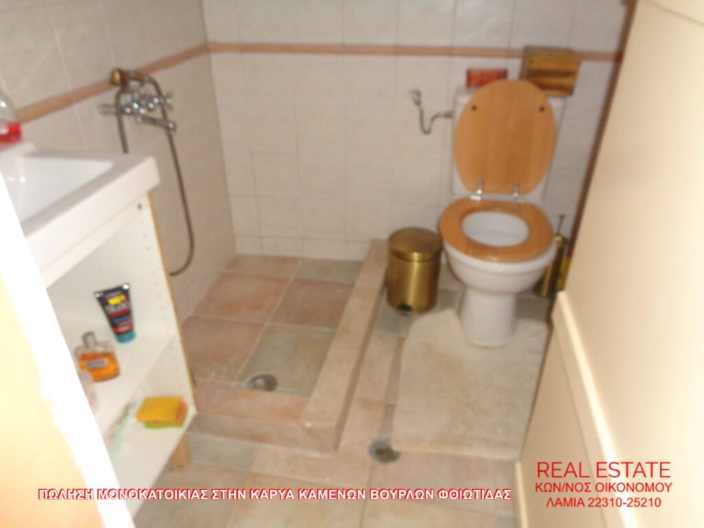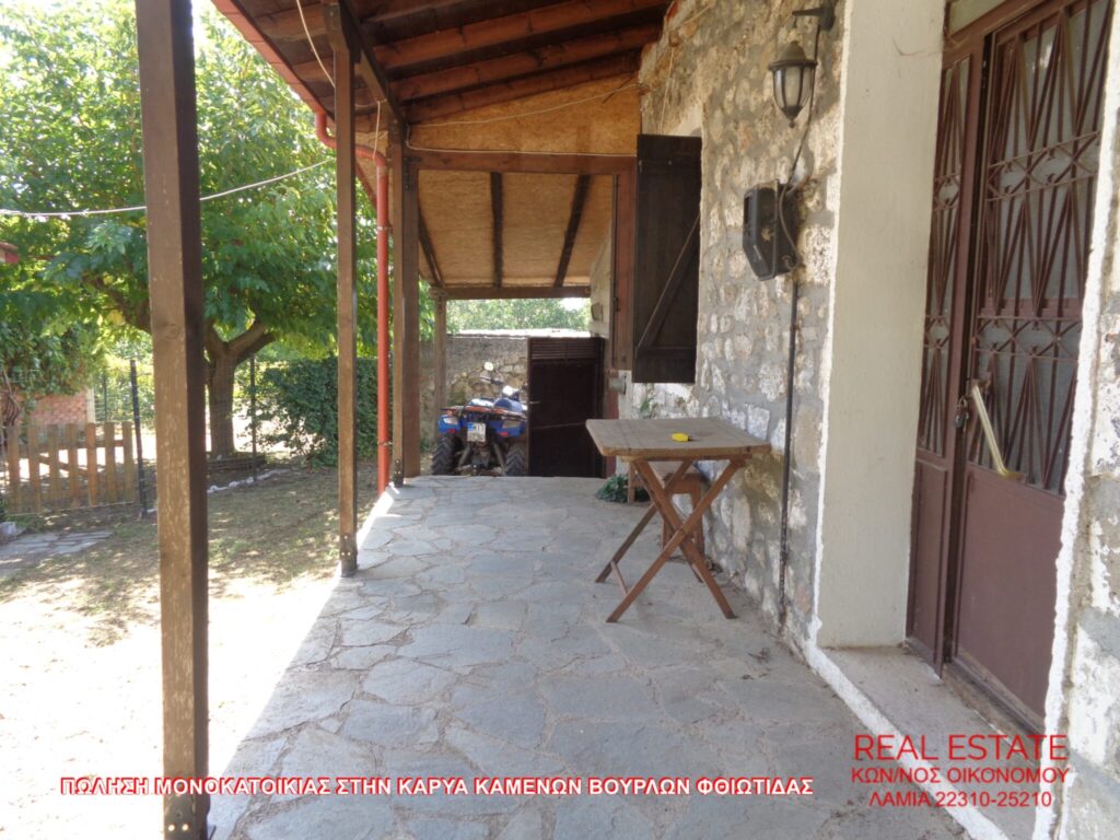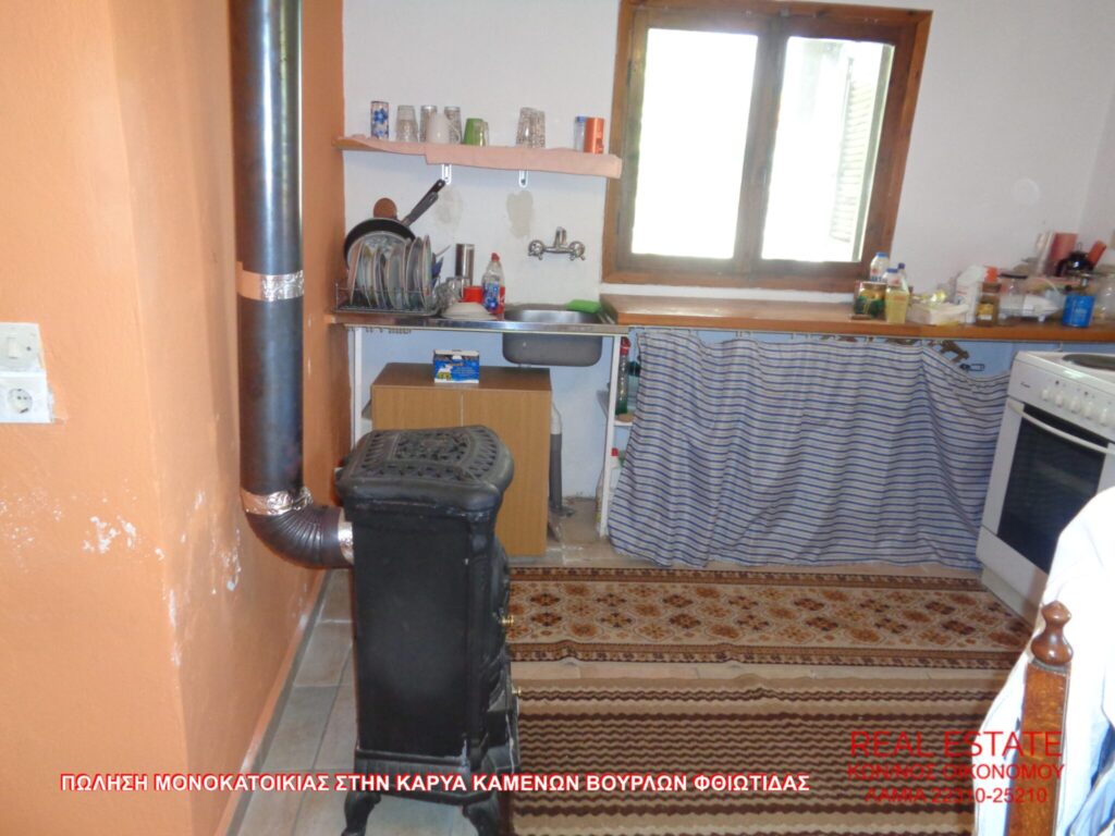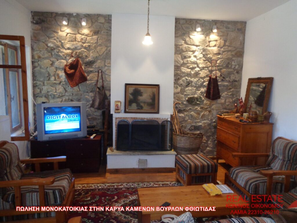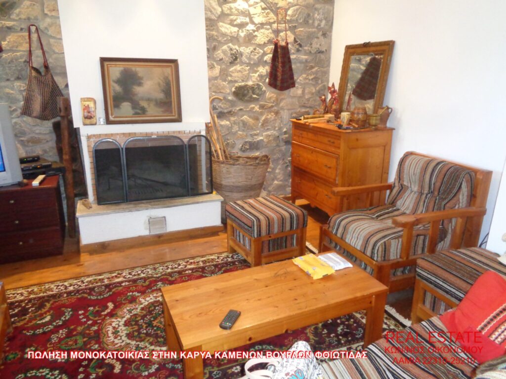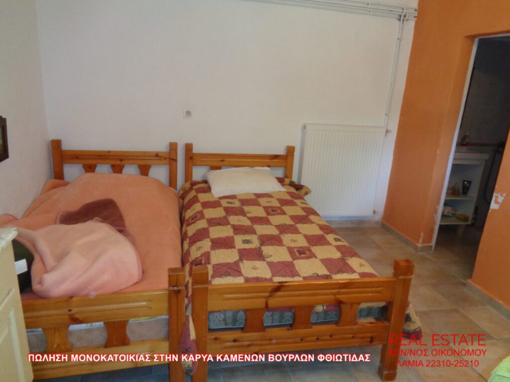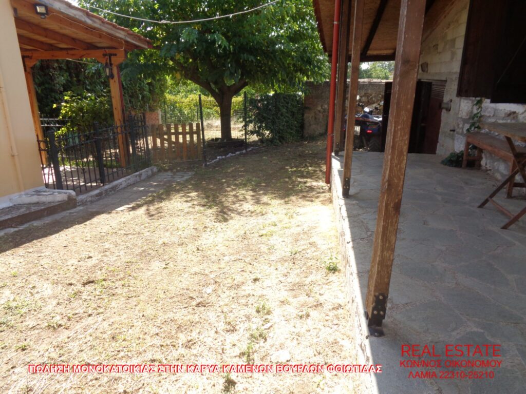 Πωλείται μονοκατοικία, στην Καρυά Καμένων Βούρλων Φθιώτιδας. Είναι 70 τ.μ., πέτρινη, πλήρως ανακαινισμένη προ 5ετίας και φωτεινή. Αποτελείται από σαλόνι, κουζίνα, ένα υπνοδωμάτιο και λουτρό. Διαθέτει αυτονομία θέρμανσης με καλοριφέρ, τζάκι, αποθήκη εκτός του σπιτιού, αυλή και υπέροχη θέα. Υπάρχει πλάκα και κεραμοσκεπή στην οροφή. Βρίσκεται σε 150 τ.μ. οικόπεδο και απέχει 10 χιλιόμετρα από τα Καμένα Βούρλα. Τιμή πώλησης 63.000 ευρώ.