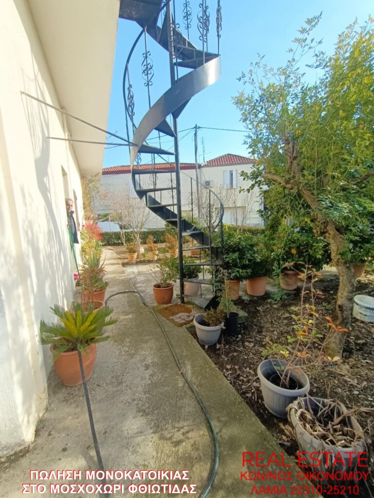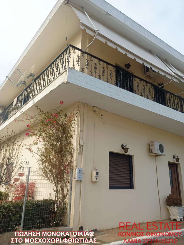 Πωλείται μονοκατοικία, στο Μοσχοχώρι Φθιώτιδας. Αποτελείται από δύο διαμερίσματα, ισόγειο και πρώτο όροφο. Το ισόγειο είναι 62 τ.μ., με δυνατότητα επέκτασης των τετραγωνικών του διαμερίσματος, αποτελούμενο από σαλόνι, κουζίνα, ένα υπνοδωμάτιο και ένα μπάνιο. Ο πρώτος όροφος είναι 106 τ.μ., μισθωμένος, αποτελούμενος από σαλόνι, κουζίνα, δύο υπνοδωμάτια και ένα μπάνιο. Τα διαμερίσματα έχουν δική τους ξεχωριστή είσοδο. Η μονοκατοικία διαθέτει αυτονομία θέρμανσης, κουφώματα αλουμινίου, μεγάλη βεράντα με θέα, αυλή και παλαιά πέτρινη αποθήκη 120 τ.μ.. Βρίσκεται σε 1 στρέμμα περιφραγμένο οικόπεδο, δίπλα στην πλατεία Μοσχοχωρίου. Η κατασκευή της έγινε το 1984 και είναι σε άριστη κατάσταση. Τιμή πώλησης 153.000 ευρώ.