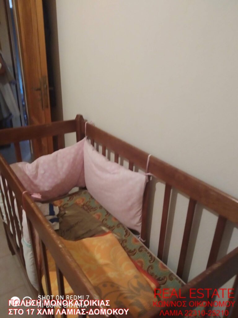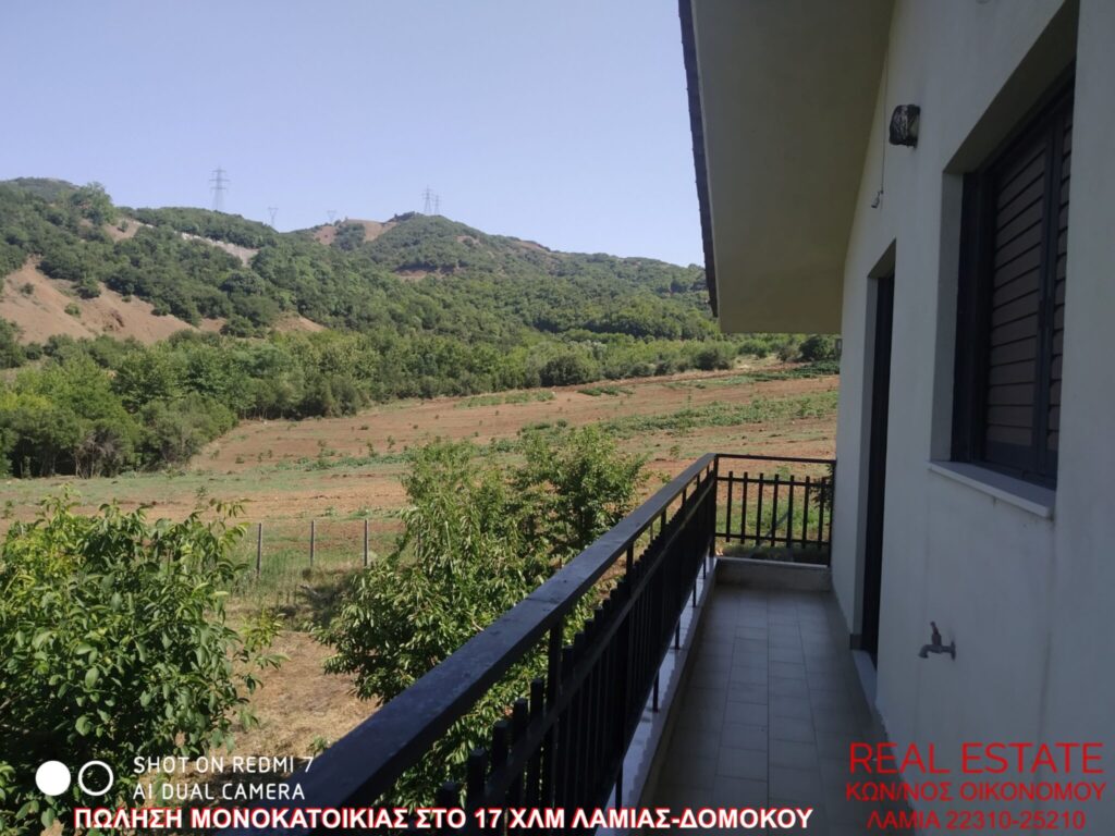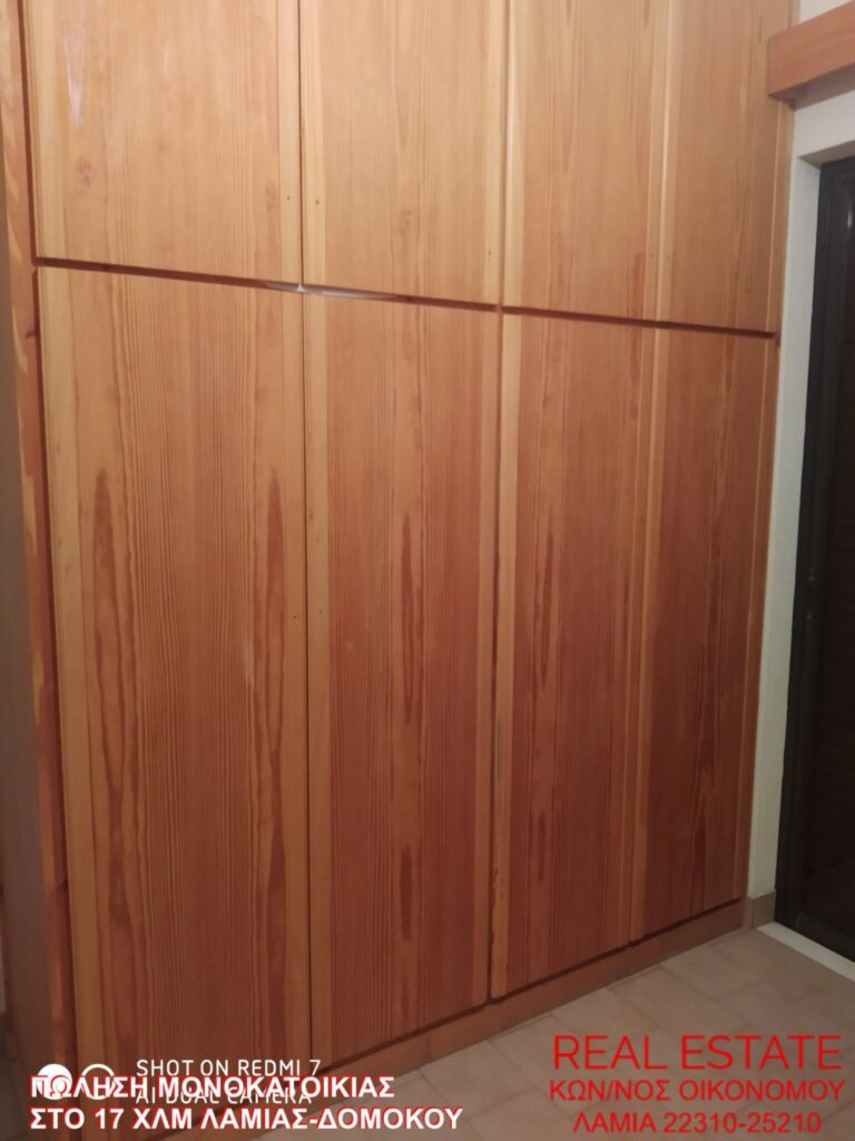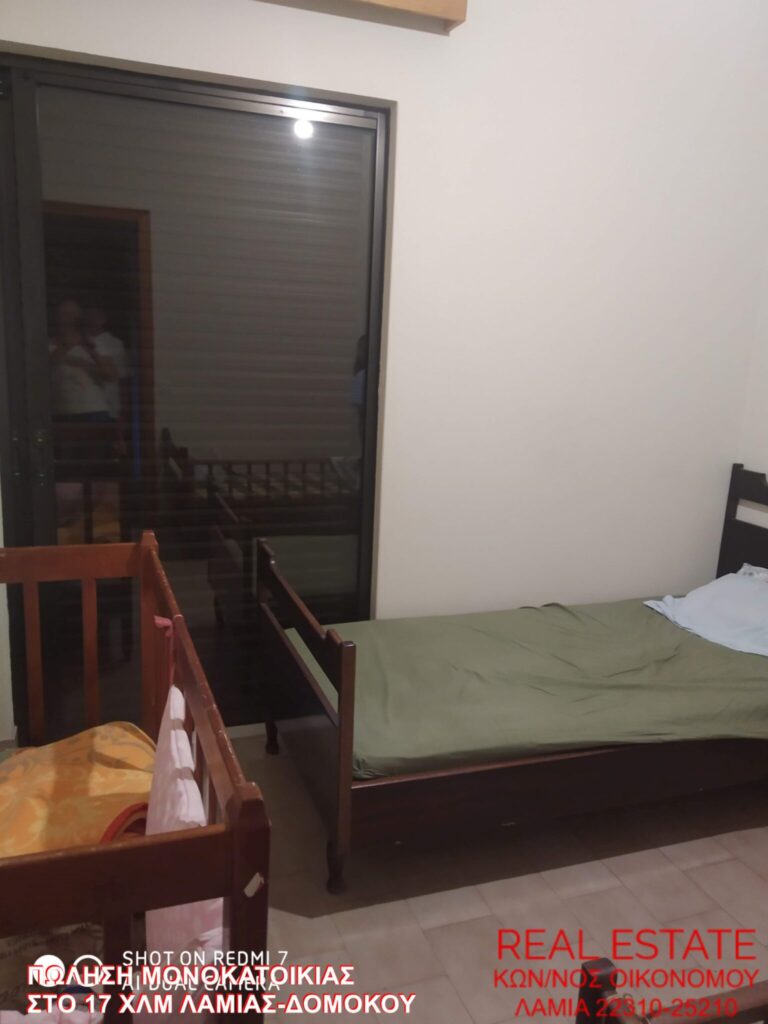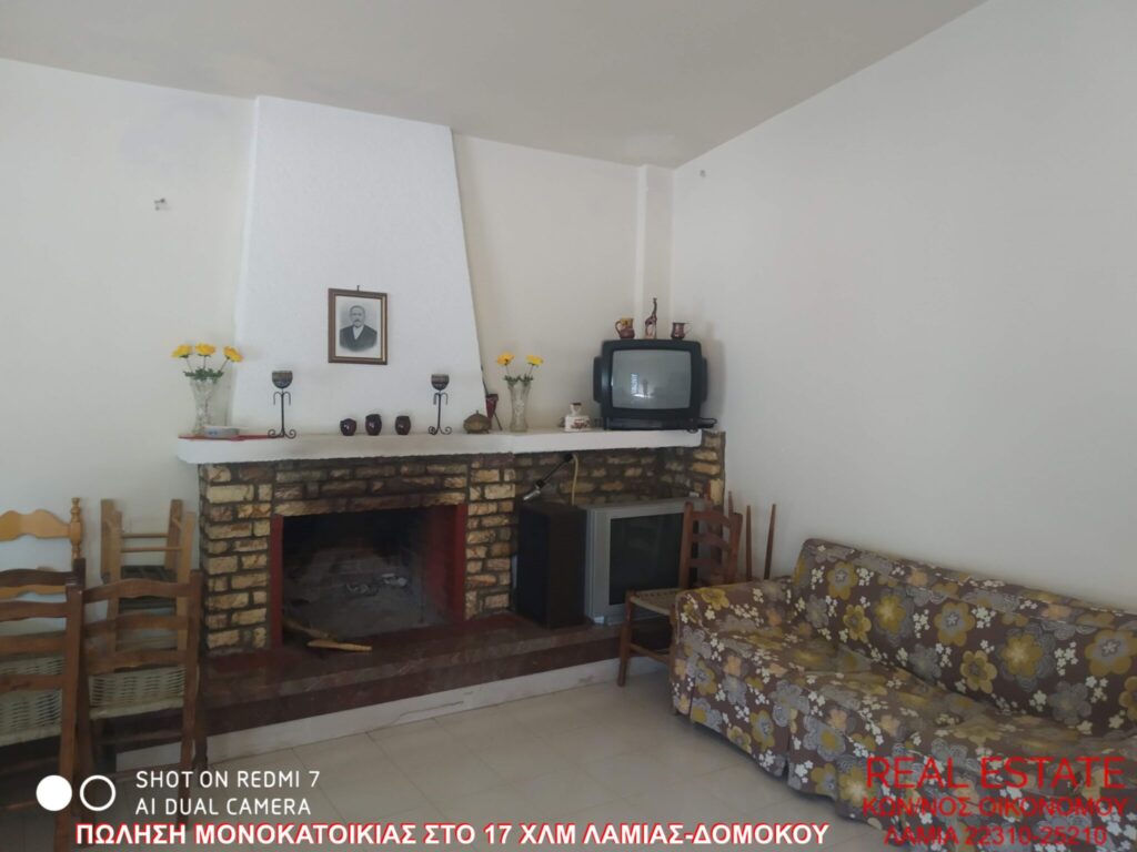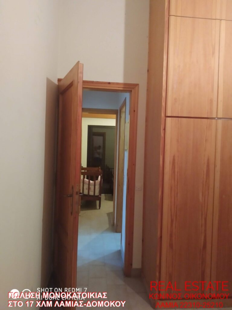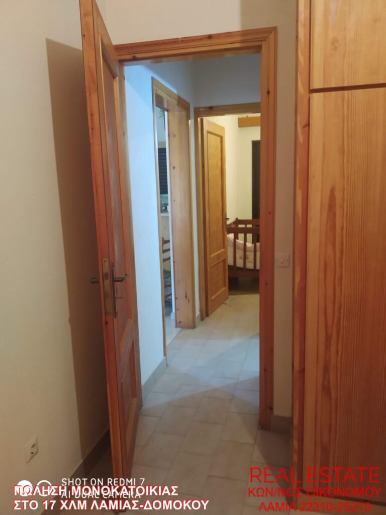 Πωλείται μονοκατοικία, στο 17 χλμ Λαμίας-Δομοκού. Αποτελείται από ημιτελές, ισόγειο διαμέρισμα, με ηλεκτρολογική και υδραυλική εγκατάσταση και από διαμέρισμα 1ου ορόφου 80 τ.μ., με ενιαίο χώρο σαλόνι-κουζίνα, δύο υπνοδωμάτια και ένα μπάνιο. Διαθέτει τζάκι, κουφώματα αλουμινίου, διπλά τζάμια, σίτες και βεράντα. Η μονοκατοικία βρίσκεται σε 5 στέμματα περιφραγμένο οικόπεδο, με κεραμοσκεπή και όμορφο κήπο με πολλά οπωροφόρα δένδρα. Η κατασκευή της έγινε το 1990. Τιμή πώλησης 75.000 ευρώ.