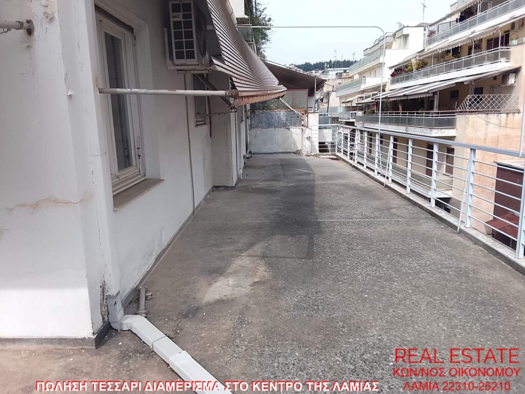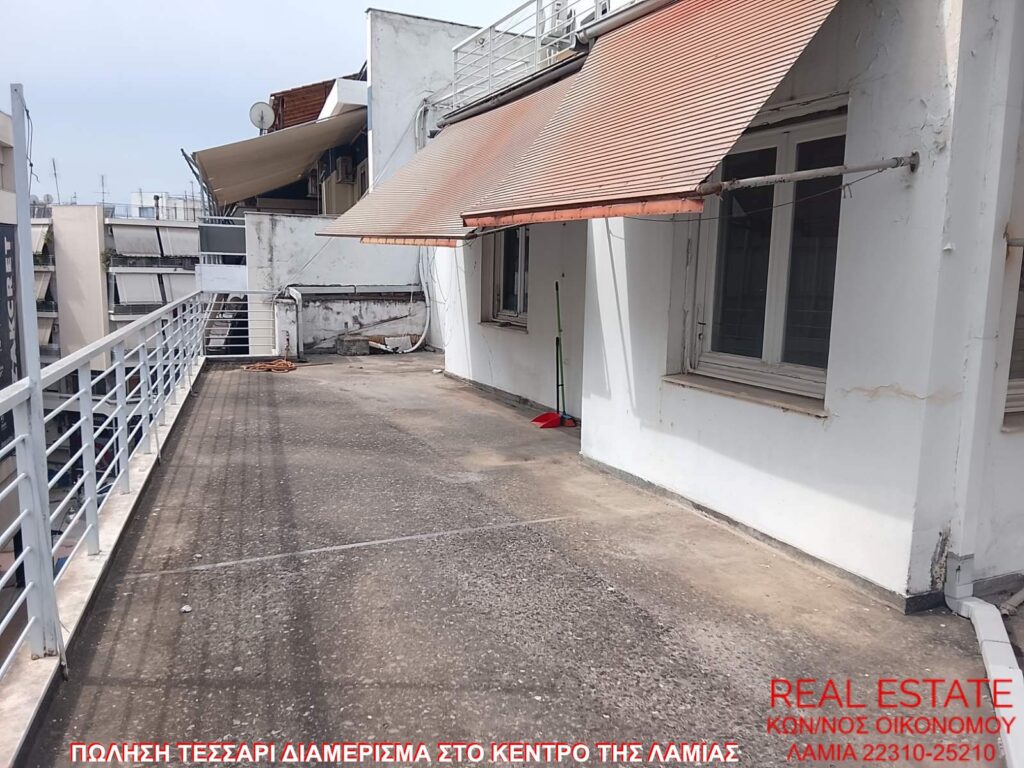 Πωλείται τεσσάρι διαμέρισμα, στο κέντρο της Λαμίας. Είναι 100 τ.μ., 3ου ορόφου, ρετιρέ, διαμπερές και φωτεινό. Αποτελείται από σαλόνι, κουζίνα, τρία υπνοδωμάτια, ένα μπάνιο και αποθήκη εντός του σπιτιού. Διαθέτει 70 τ.μ. βεράντα με τέντες, θέα και ασανσέρ στην πολυκατοικία. Τιμή πώλησης 80.000 ευρώ.