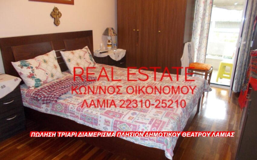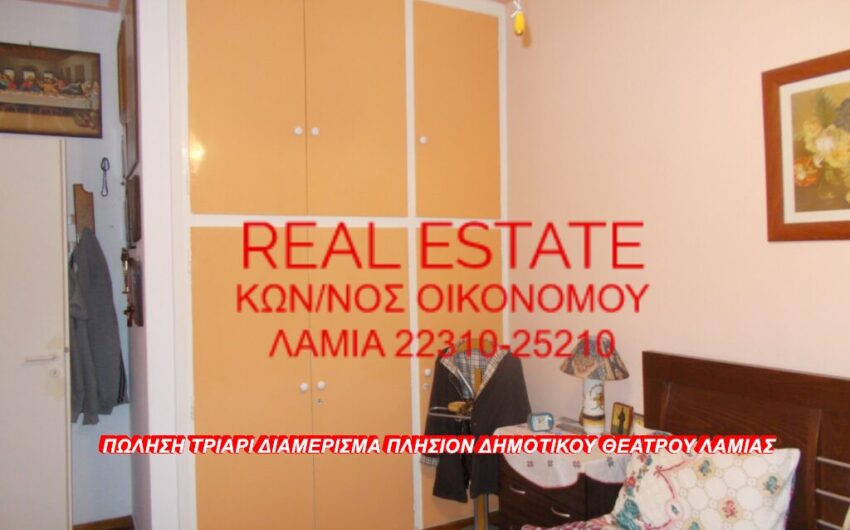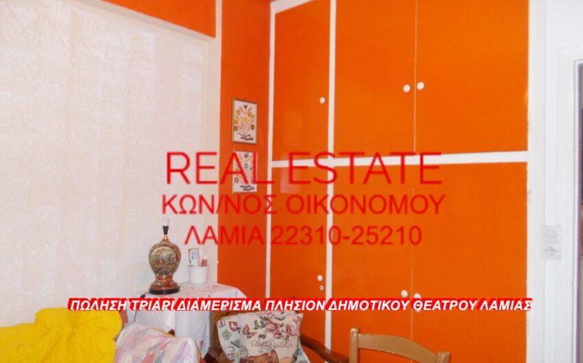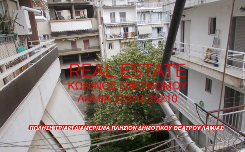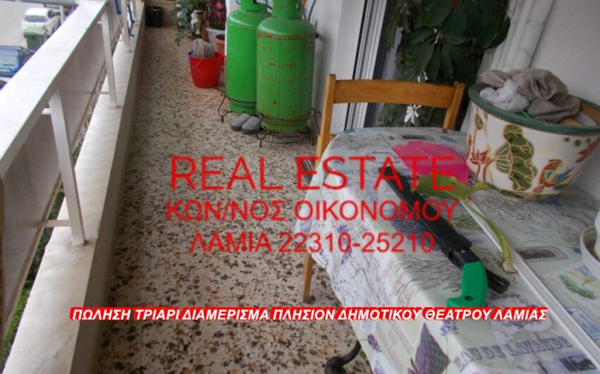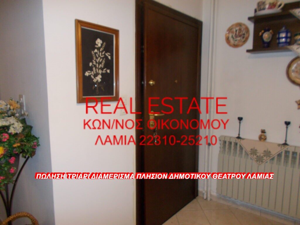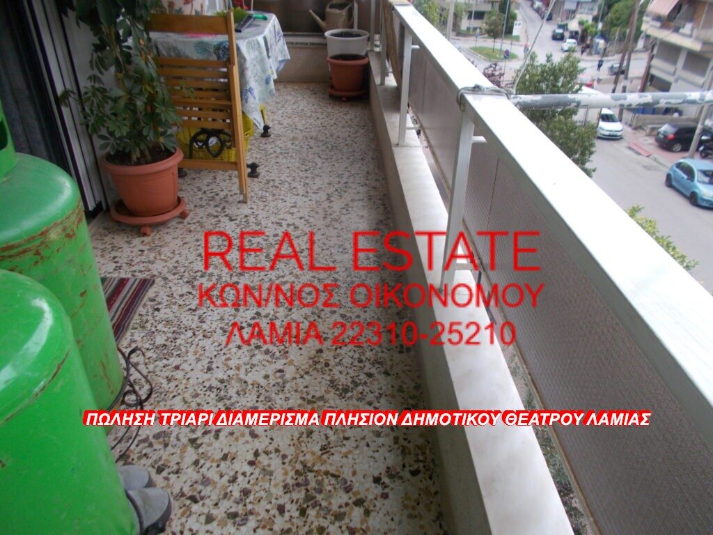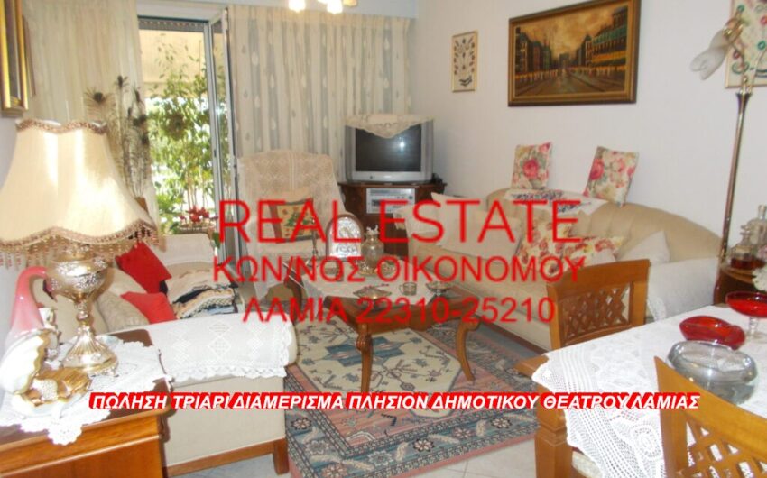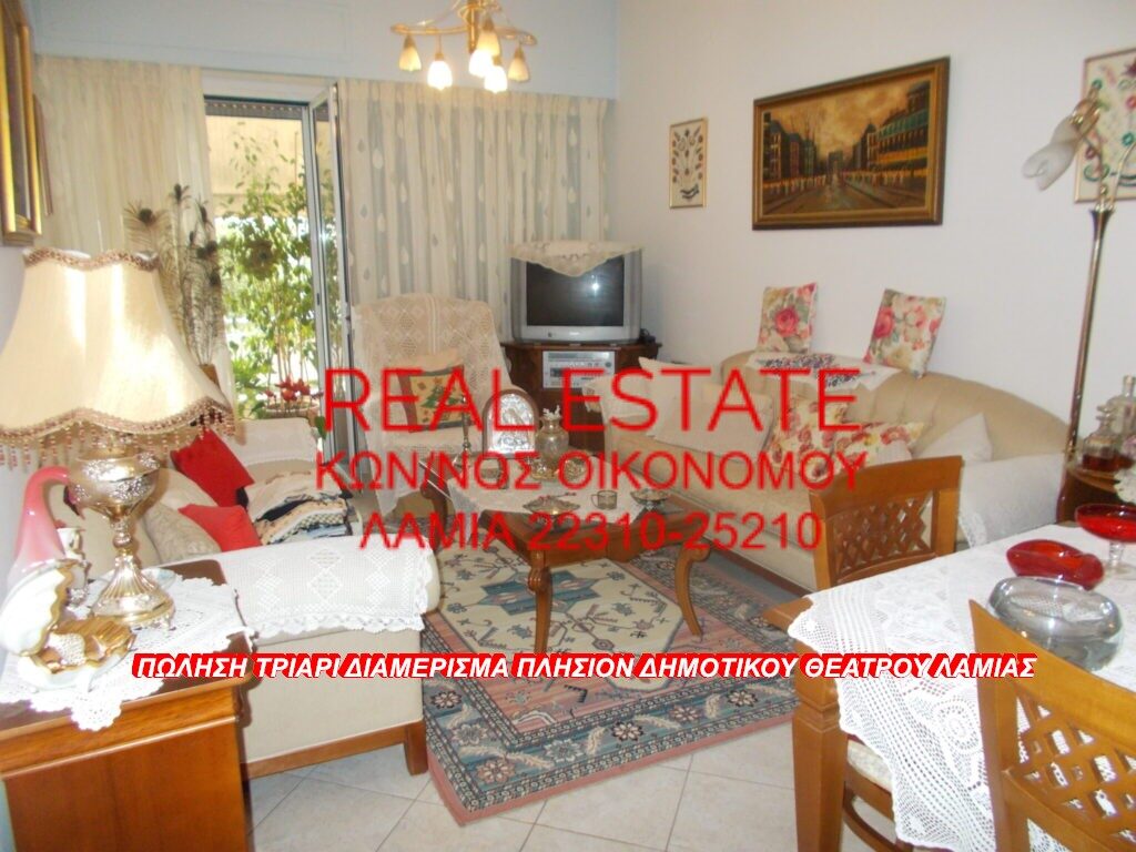 Πωλείται τριάρι διαμέρισμα, πλησίον δημοτικού Θεάτρου Λαμίας. Είναι 92τ.μ., 3ου ορόφου, διαμπερές και φωτεινό. Αποτελείται από μεγάλο σαλόνι, κουζίνα, δύο υπνοδωμάτια και λουτρό. Διαθέτει αυτονομία θέρμανσης με δικό του λέβητα, διπλά τζάμια, σίτες, τέντες, πόρτα ασφαλείας και μεγάλη βεράντα με θέα. Ανακαινίστηκε πλήρως το 2009 και είναι σε άριστη κατάσταση. Βρίσκεται πλησίον super market Μασούτης. Τιμή πώλησης 130.000 ευρώ.
