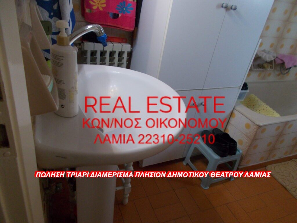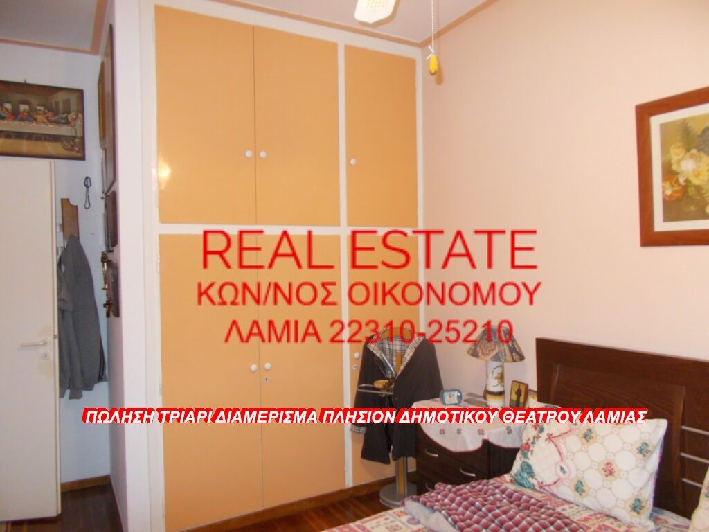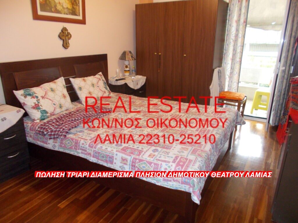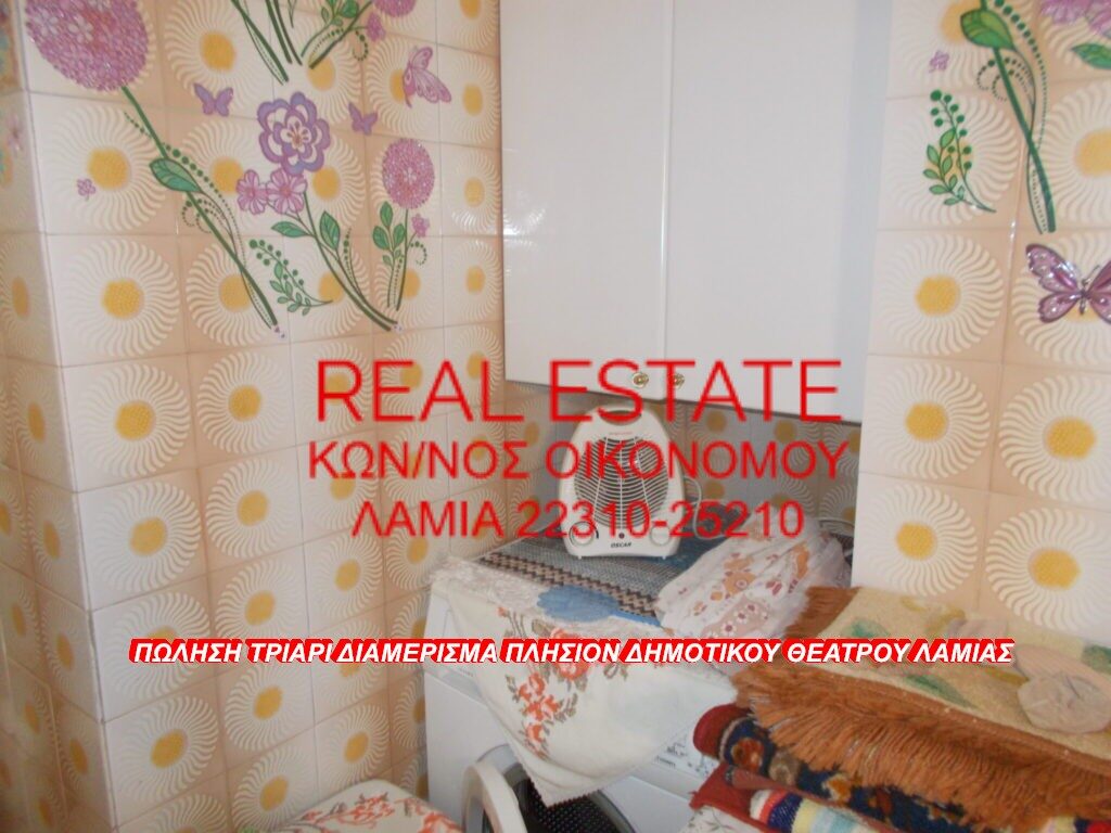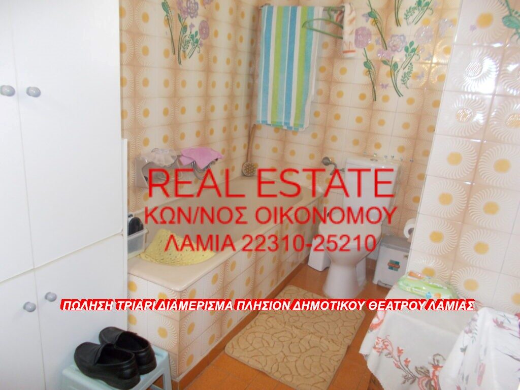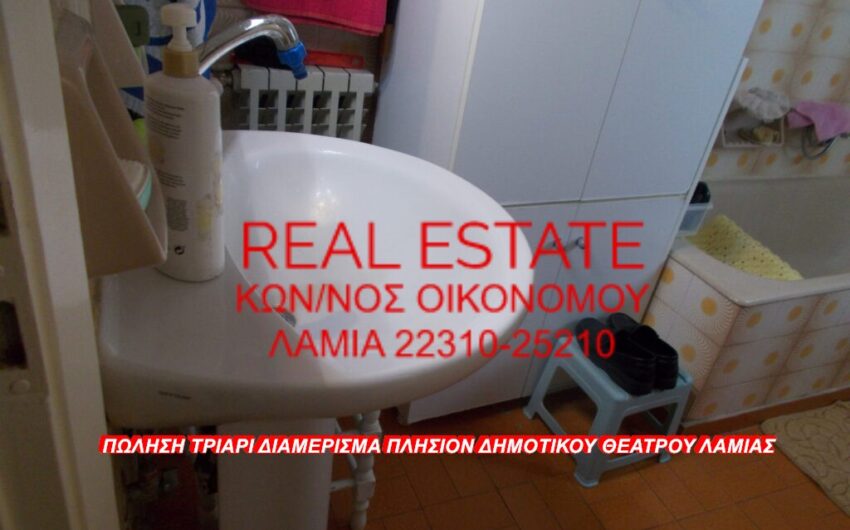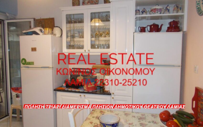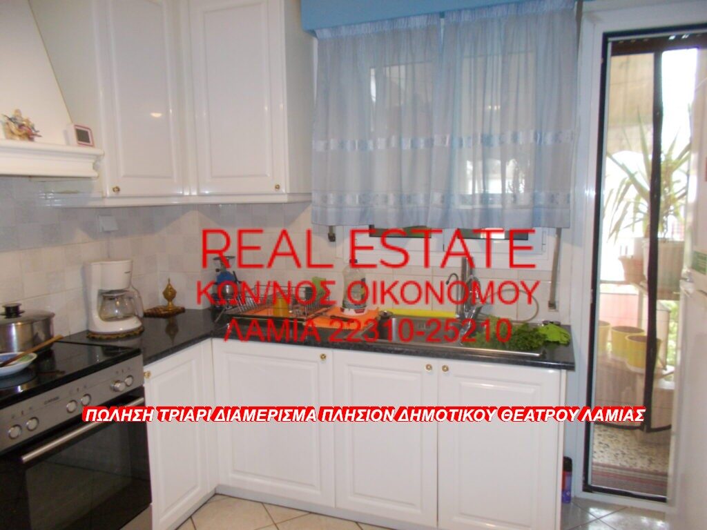 Πωλείται τριάρι διαμέρισμα, πλησίον δημοτικού Θεάτρου Λαμίας. Είναι 92τ.μ., 3ου ορόφου, διαμπερές και φωτεινό. Αποτελείται από μεγάλο σαλόνι, κουζίνα, δύο υπνοδωμάτια και λουτρό. Διαθέτει αυτονομία θέρμανσης με δικό του λέβητα, διπλά τζάμια, σίτες, τέντες, πόρτα ασφαλείας και μεγάλη βεράντα με θέα. Ανακαινίστηκε πλήρως το 2009 και είναι σε άριστη κατάσταση. Βρίσκεται πλησίον super market Μασούτης. Τιμή πώλησης 130.000 ευρώ.