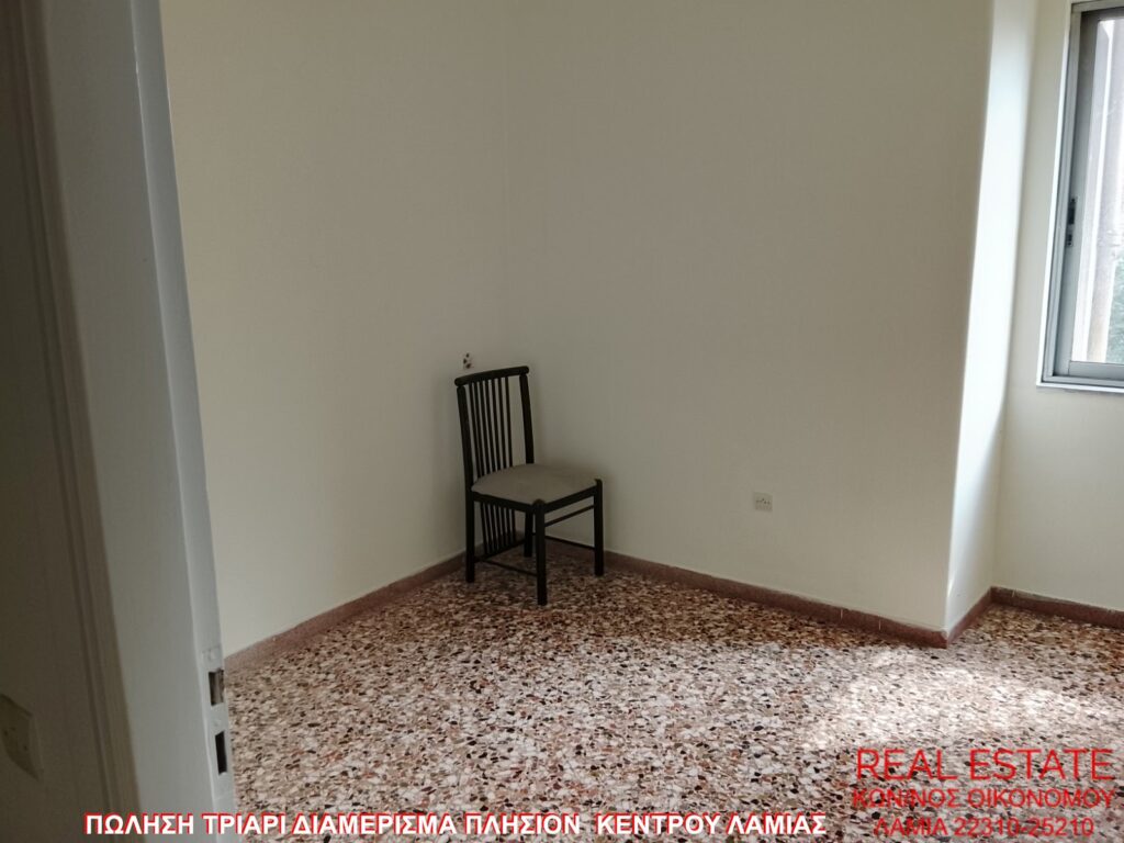 Πωλείται τριάρι διαμέρισμα, πλησίον κέντρου Λαμίας. Είναι 80 τ.μ., 1ου ορόφου, φωτεινό και χρήζει ανακαίνισης. Αποτελείται απί σαλόνι, κουζίνα, δύο υπνοδωμάτια και ένα μπάνιο. Διαθέτει βεράντα, τέντες και αποθήκη. Δεν έχει ασανσέρ. Τιμή πώλησης 46.000 ευρώ.