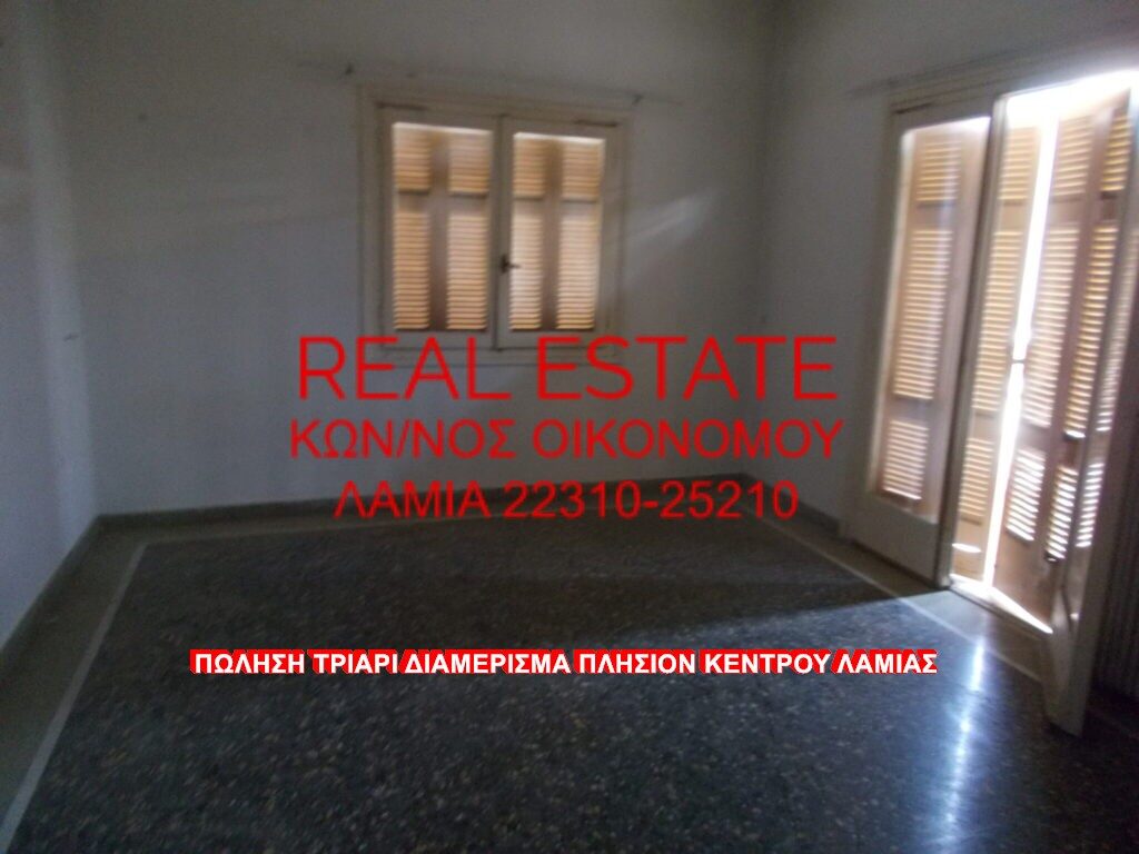 Πωλείται τριάρι διαμέρισμα, πλησίον κέντρου Λαμίας. Το διαμέρισμα είναι 85τ.μ., 2ου ορόφου, φωτεινό και χρήζει ανακαίνισης. Αποτελείται από σαλόνι, κουζίνα, δύο υπνοδωμάτια και λουτρό. Τιμή πώλησης 39.000 ευρώ.