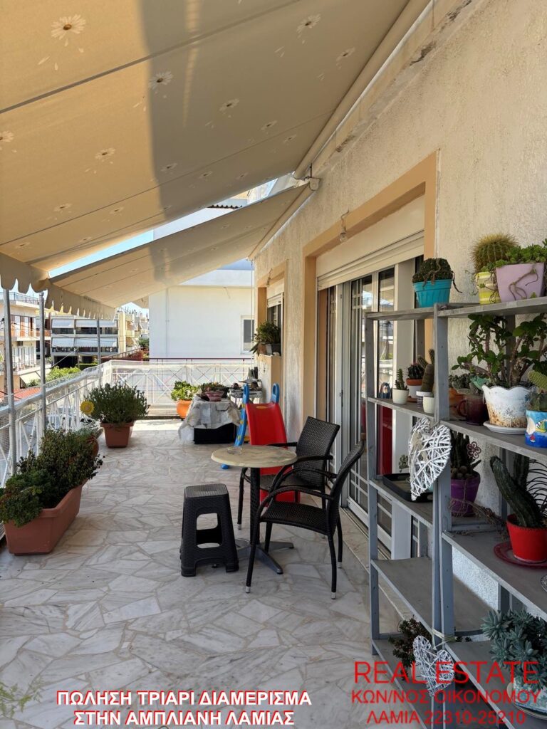 Πωλείται τριάρι διαμέρισμα, στην Άμπλιανη Λαμίας. Είναι 82 τ.μ., 2ου ορόφου, κατασκευής 1994 και φωτεινό. Αποτελείται από ενιαίο χώρο σαλόνι-κουζίνα, δύο υπνοδωμάτια και ένα μπάνιο. Διαθέτει αυτονομία θέρμανσης, κλιματιστικά, κουφώματα αλουμινίου, διπλά τζάμια, σίτες και μεγάλη βεράντα με τέντες. Τιμή πώλησης 100.000 ευρώ.