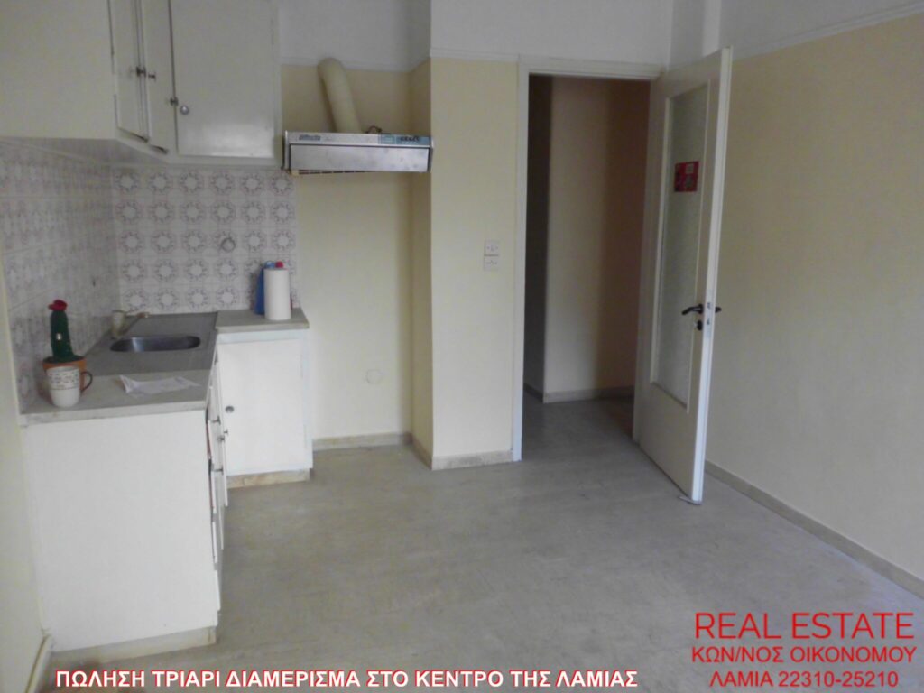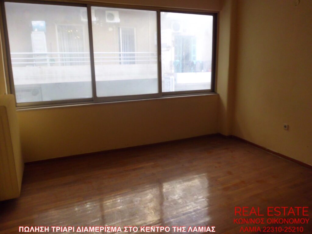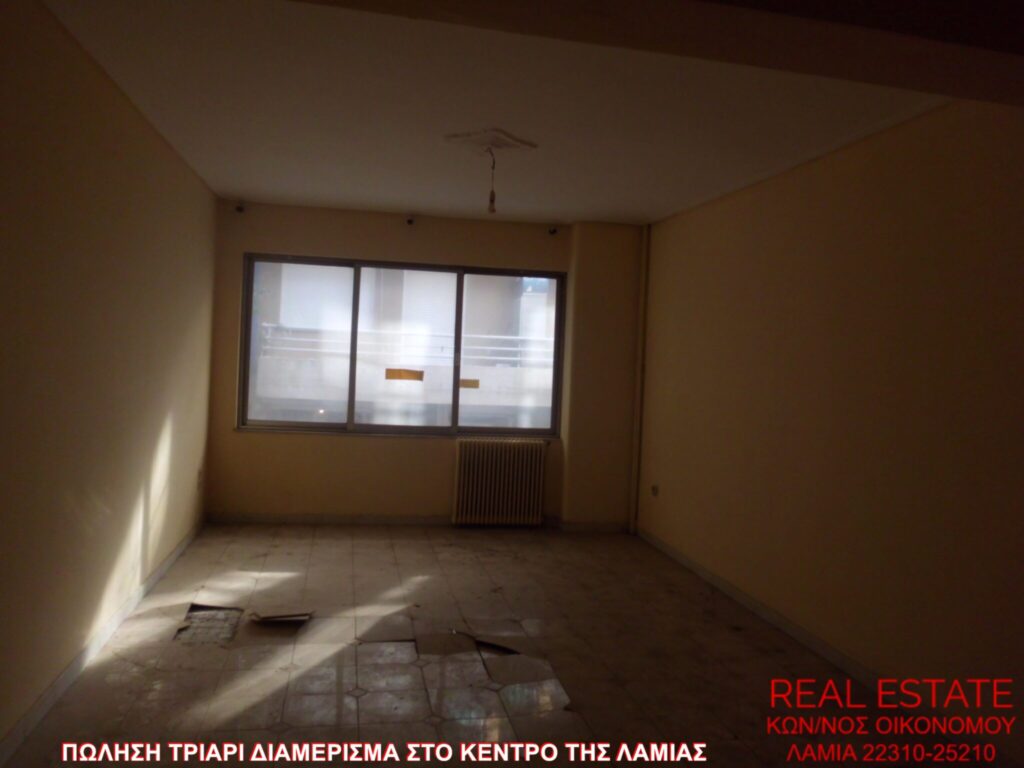 Πωλείται τριάρι διαμέρισμα, στο κέντρο της Λαμίας. Είναι 108 τ.μ., 1ου ορόφου και φωτεινό. Αποτελείται από σαλόνι, κουζίνα, δύο υπνοδωμάτια και ένα μπάνιο. Διαθέτει βεράντα και χρήζει ανακαίνισης. Κατάλληλο και για επαγγελματική χρήση. Τιμή πώλησης 54.000 ευρώ.