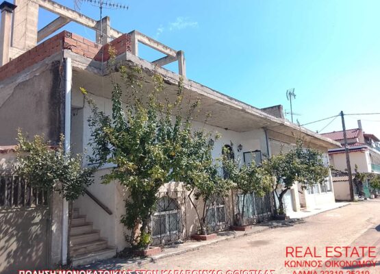 Πωλείται μονοκατοικία, στον Καραβόμυλο Φθιώτιδας. Σε αυτή υπάρχουν δύο διπλοκατοικίες, μία αριστερά και μία δεξιά, με κοινή είσοδο. Από αυτές πωλείται η μία πλευρά, που περιλαμβάνει δύο διαμερίσματα. Το ένα διαμέρισμα είναι 120 τ.μ., 1ου ορόφου, αποτελούμενο από ενιαίο χώρο σαλόνι-κουζίνα, τζάκι, τρία υπνοδωμάτια, δύο μεγάλα μπάνια και w/c. Το άλλο διαμέρισμα είναι ισόγειο και ημιτελές, καθώς είναι ακόμη στα μπετά. Και τα δύο διαθέτουν αυλή, μεγάλες βεράντες με τέντες, θέα θάλασσα και χώρο για parking. Απέχουν 150 μέτρα από την θάλασσα και είναι διαμπερή και φωτεινά, κατάλληλα για εξοχική κατοικία. Τιμή πώλησης 115.000 ευρώ.