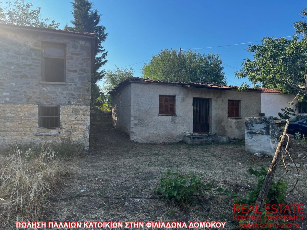 Πωλούνται δύο παλαιές κατοικίες, στην Φιλιαδώνα Δομοκού. Η μία είναι ισόγεια και η άλλη διπλοκατοικία με εσωτερική σκάλα. Είναι περίπου 80 τ.μ. έκαστη. Βρίσκονται σε 950 τ.μ. περιφραγμένο οικόπεδο, με απεριόριστη θέα. Η κατασκευή τους έγινε το 1950 και χρήζουν ολικής ανακαίνισης. Και τα δύο οικήματα είναι πέτρινα και κατάλληλα για εξοχική κατοικία. Το χωριό απέχει μόλις μισή ώρα από την πόλη της Λαμίας και 20 λεπτά από την κωμόπολη του Δομοκού. Τιμή πώλησης 25.000 ευρώ.